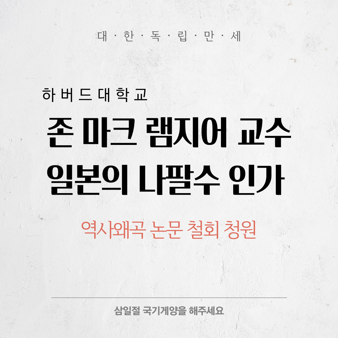 마크 렘지어 교수의 역사 왜곡 논문 철회 촉구 및 규탄