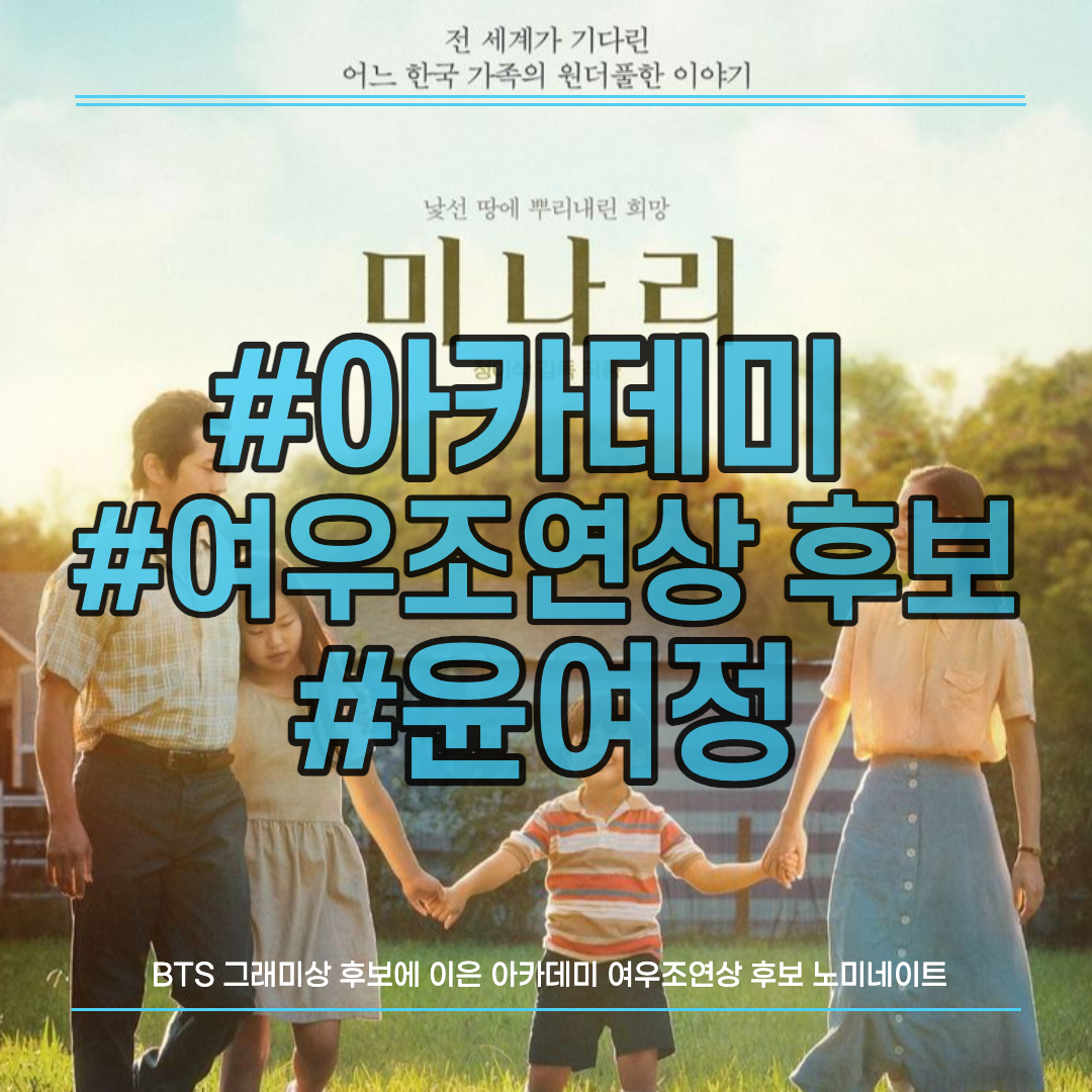 그런데 15일 월요일 저녁 미나리에 출연한 윤여정씨가 제 93회 아카데미 여우조연상 후보에 올랐다는 기쁜 소식입니다.