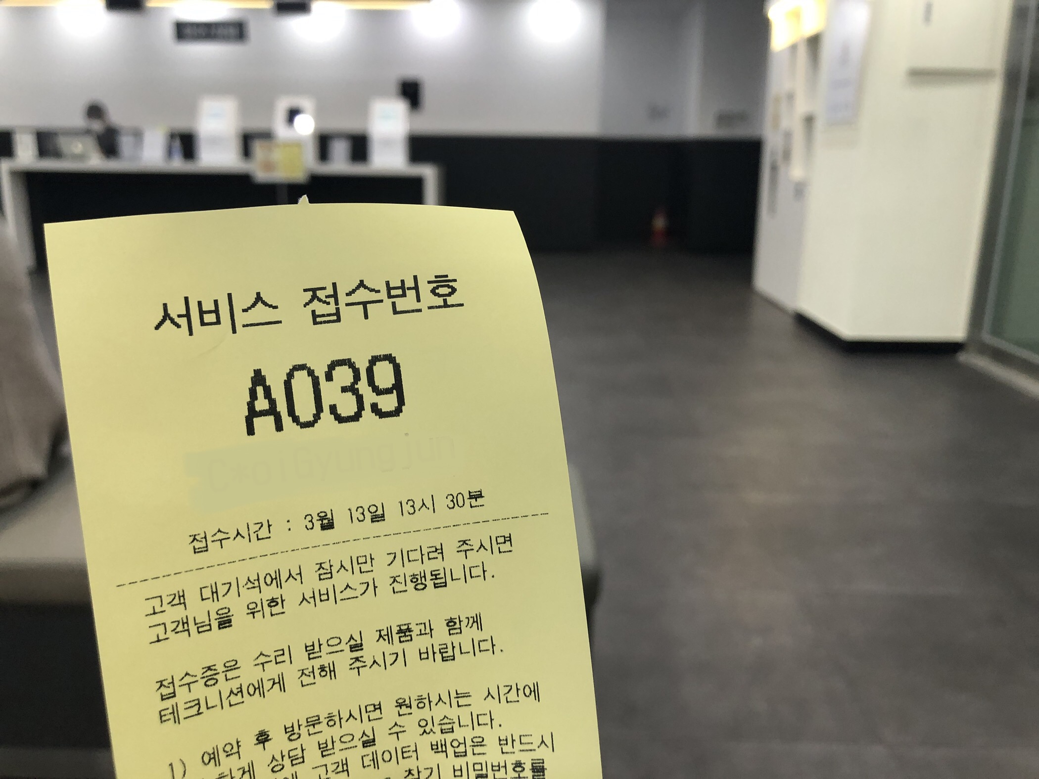 다행히 저는 서비스 예약을 하고 가서 바로 접수증을 뽑고 안내를 받을 수 있었습니다.