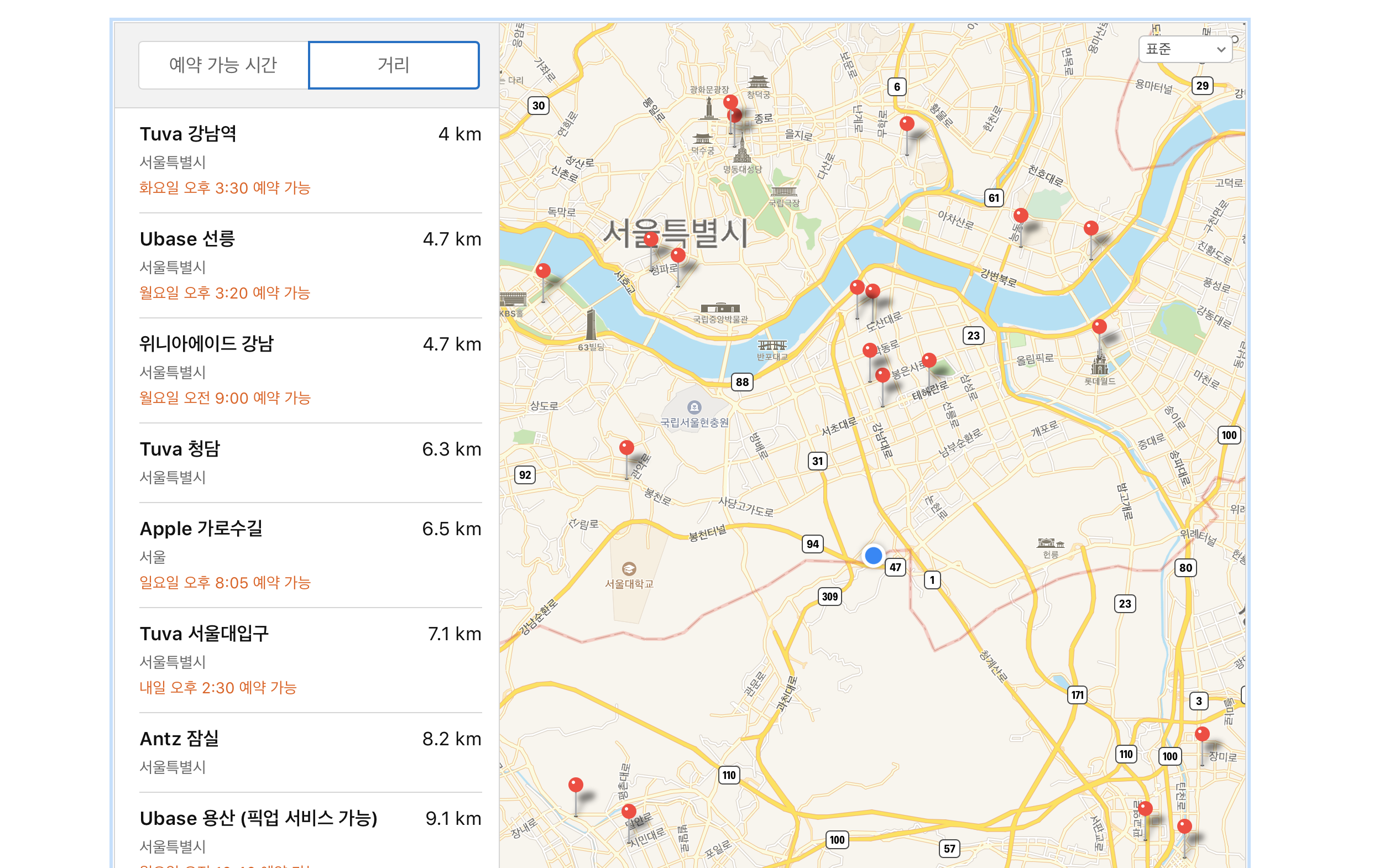 저는 가장 빨리 예약이 가능한 시간과 장소를 검색해보니