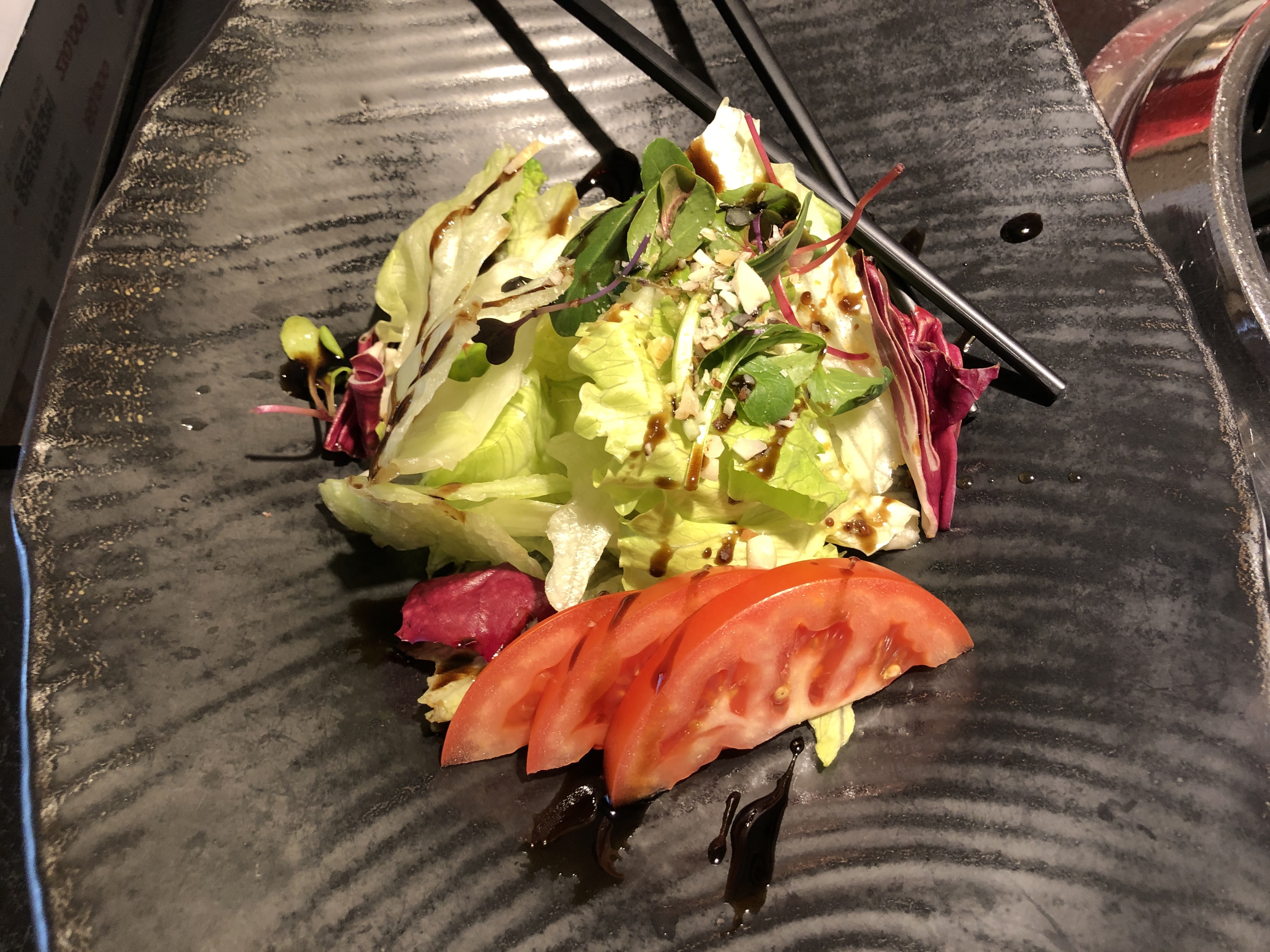 토마토와 샐러드였는데 싱싱하면서 와사비가 들어간 소스여서 아주 맛있었습니다.