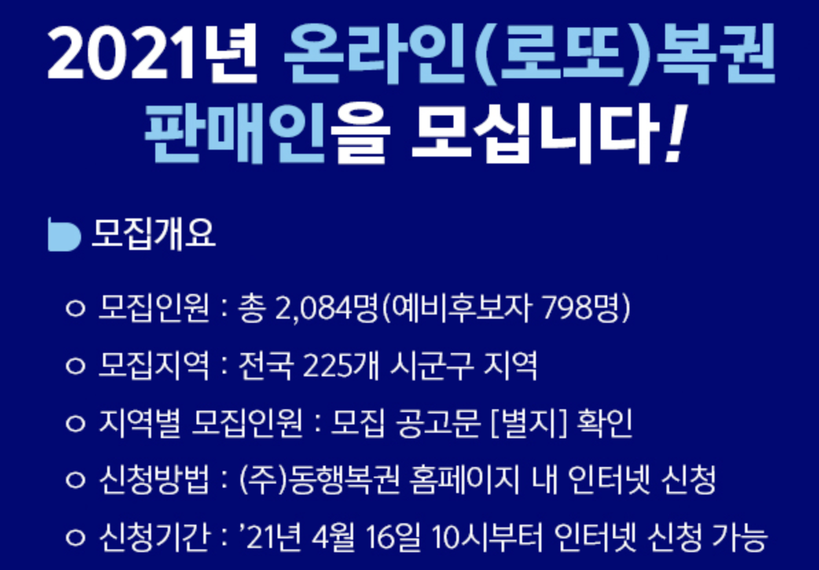 ■ 2021 로또판매인 모집 신청