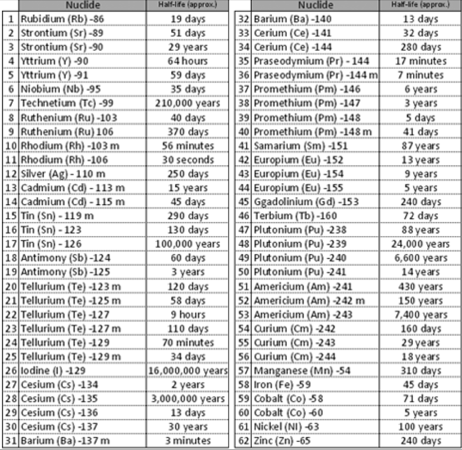 대표적으로 원전에서 발생하는 세슘, 스트론튬 등 핵연료를 태우고 나오는 방사성핵종들인데