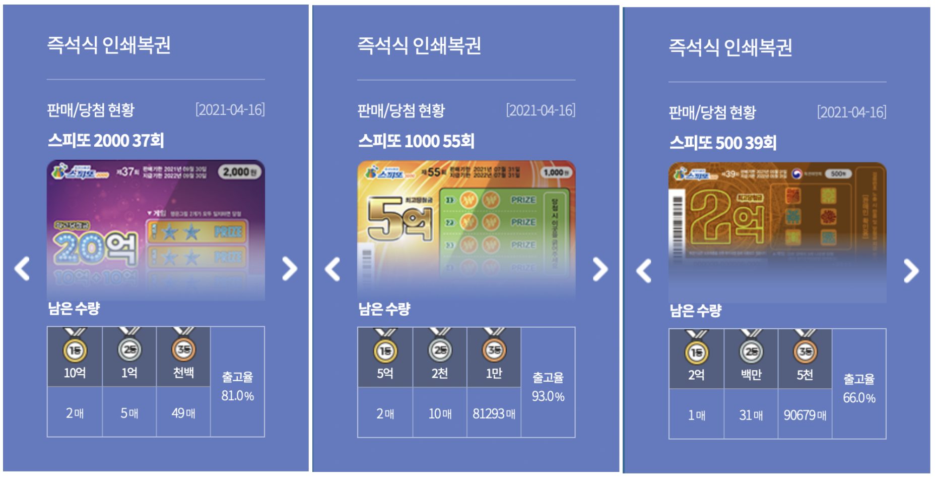 스피또 1000 출고율은 93%로 1등 2장이 기다리고 있습니다.