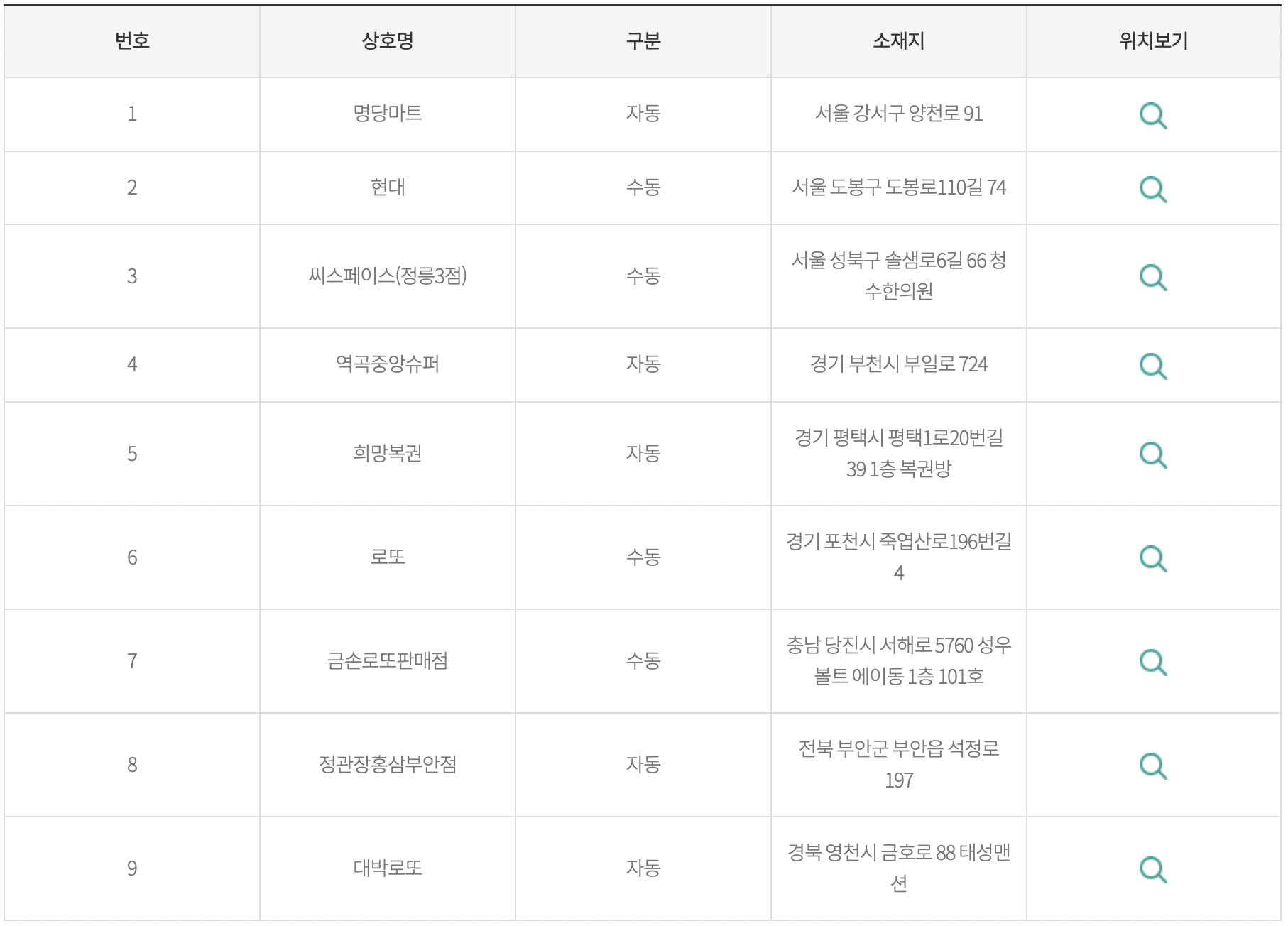 충남 당진시, 전북 부안군, 경북 영천시에서 각각 1곳에서 당첨자가 나왔습니다.