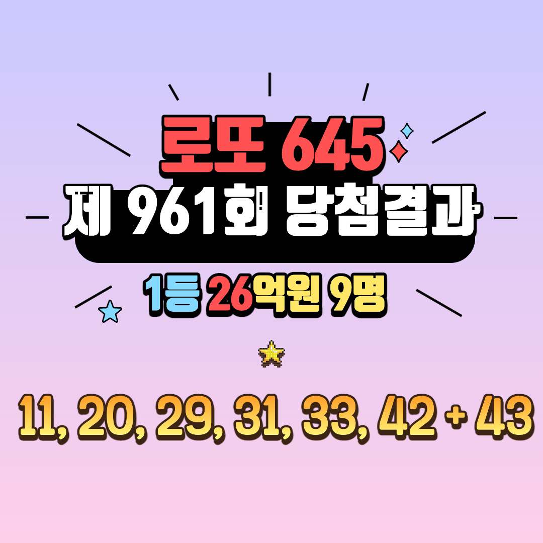 ♣ 제 961회 로또 1등 당첨번호 ♣
