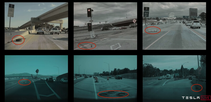 이는 오토파일럿 용도로 장착된 8대의 카메라에서 촬영한 영상입니다.