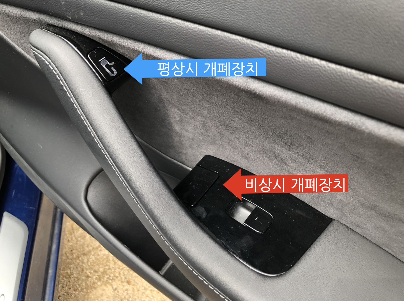 어찌되었든 모델3에는 이렇게 비상시 사용하는 물리적 개폐장치가 있어 다행입니다.
