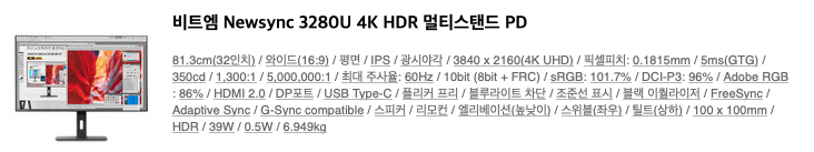 ■ 비트엠 Newsync 3280U 4K HDR 무결점
