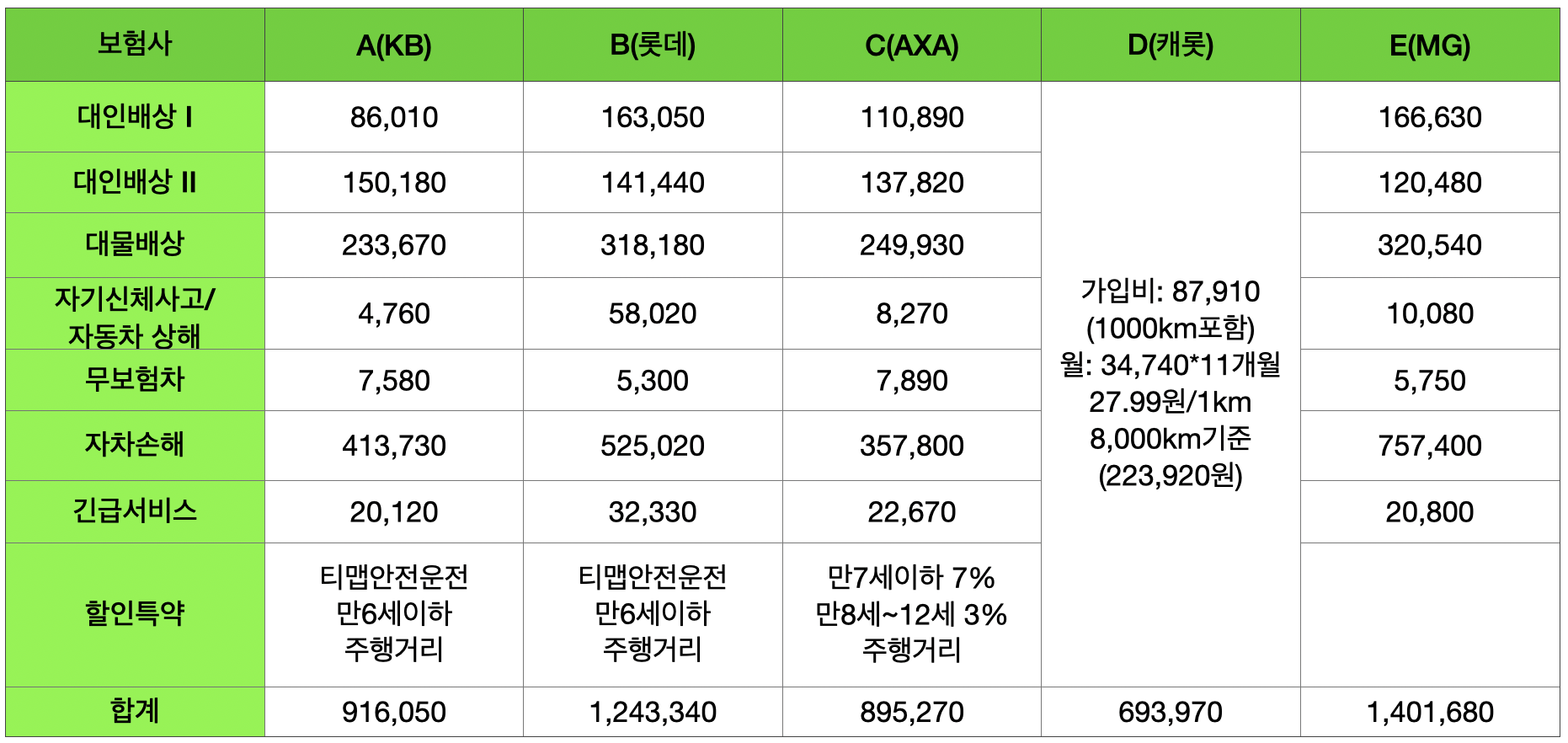 더 저렴한 보험사로 바꿔볼려고 알아보았습니다.