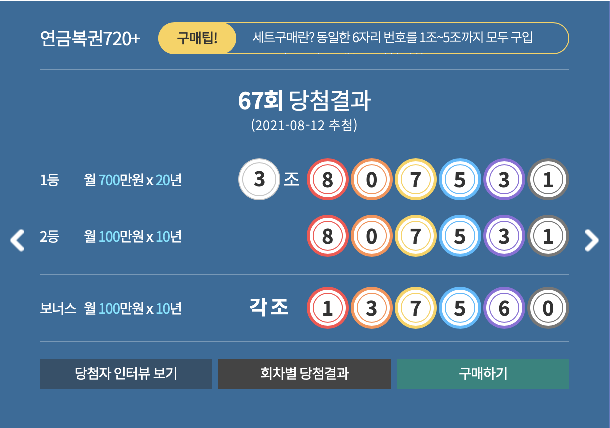그래서 다음주 연금복권 구매하실때 참고하시기 바랍니다.