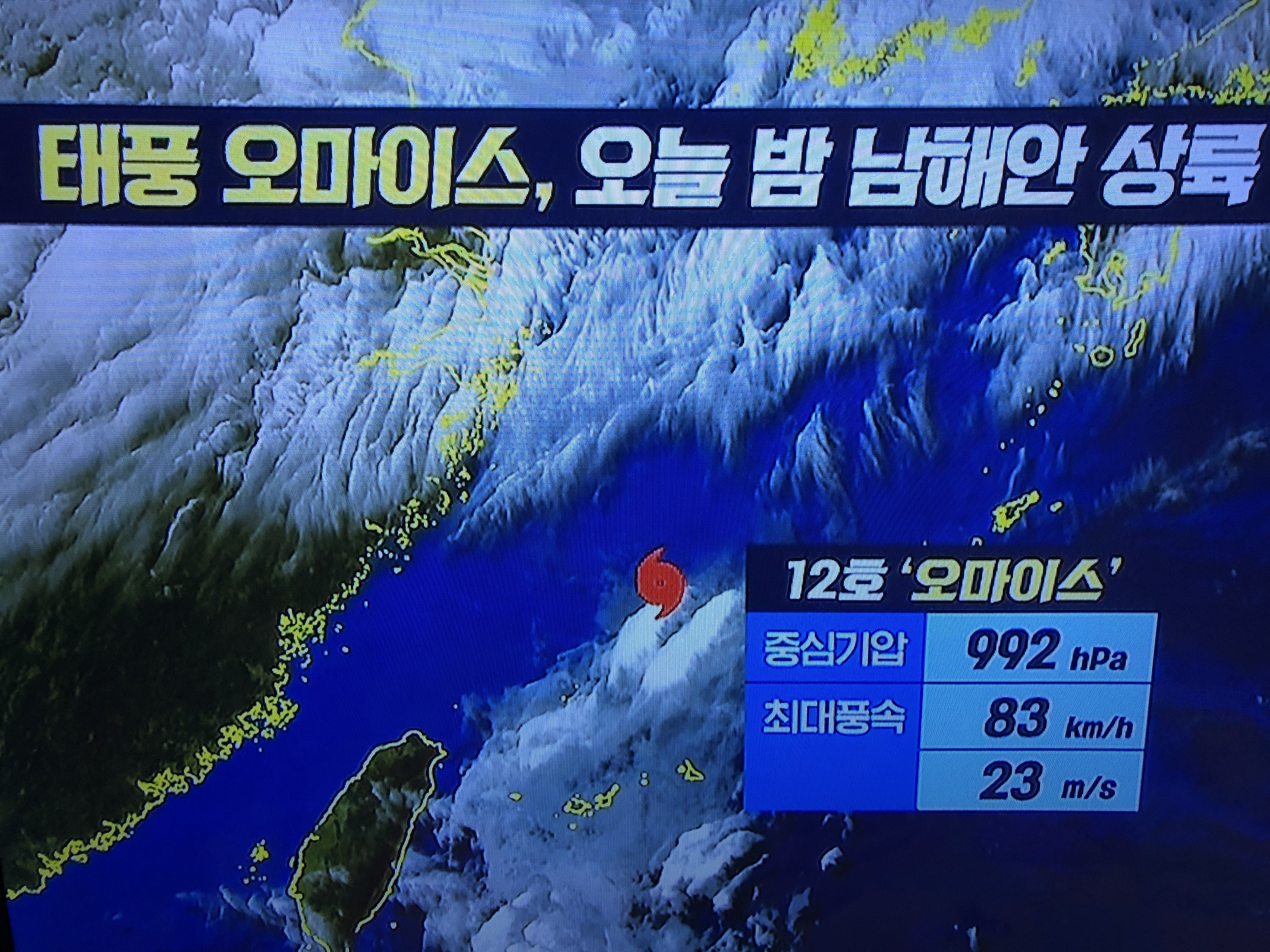 이름은 제 12호 태풍 오마이스로 오늘부터 태풍영향권에 들어가서 주의가 필요합니다.