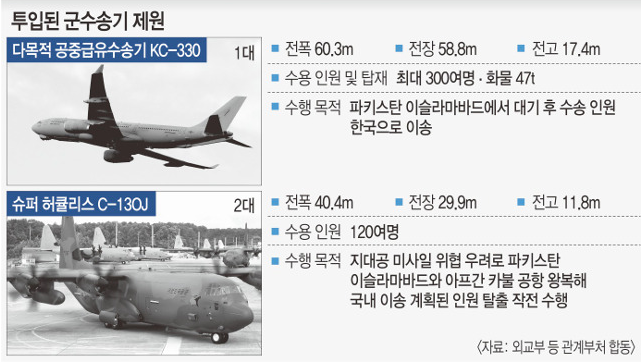 투입된 공군 수송기는 최대 300여명을 수용할수 있는 다목적 공중급유수송기 KC-330 1대와