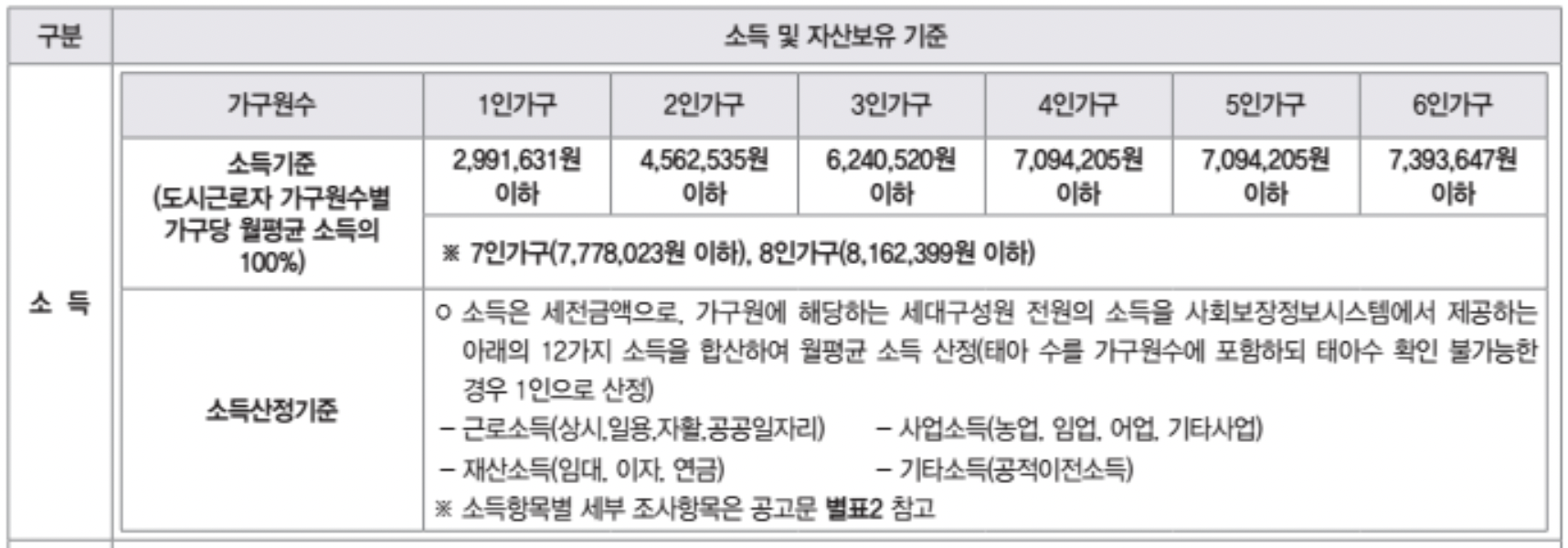 (기준소득 초과한도가 월평균 소득 70%에 150%까지이므로 소득기준이 낮아 조금 지나면 소득 초과로 퇴거될거 같아)