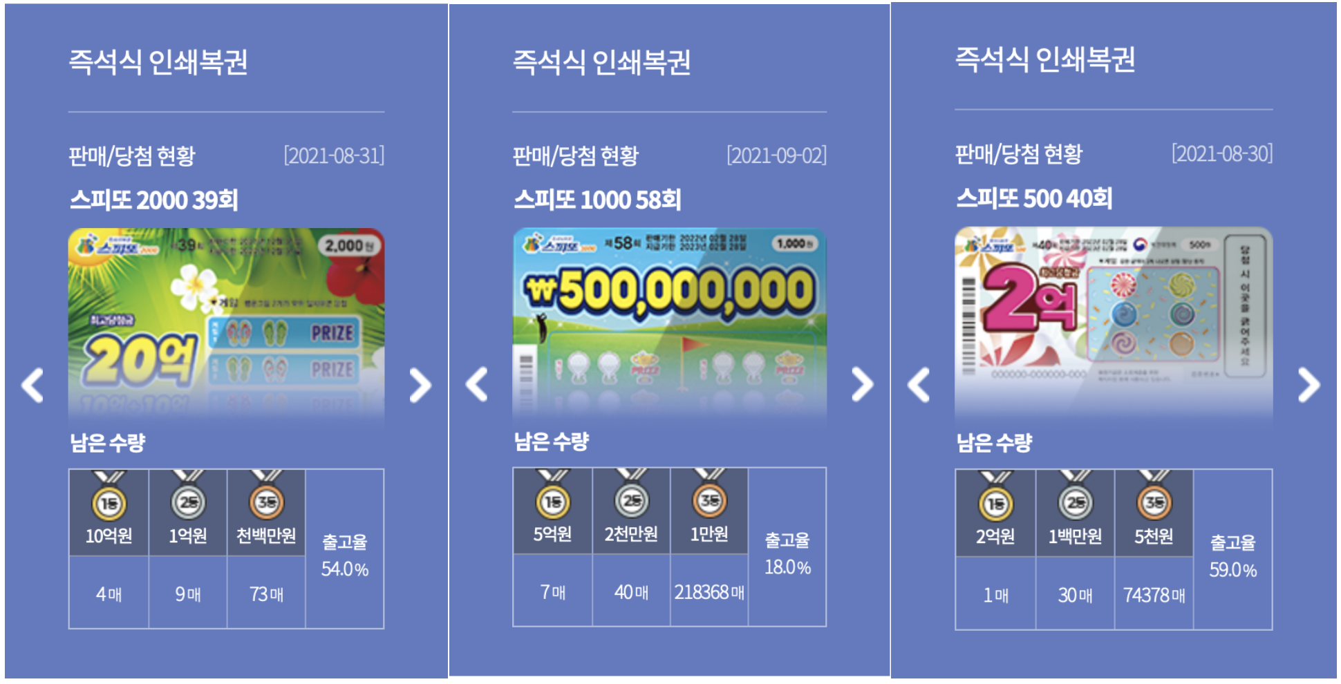 스피또 2000과 스피또 1000이 지난 회차가 이미 출고율 100%를 기록했고