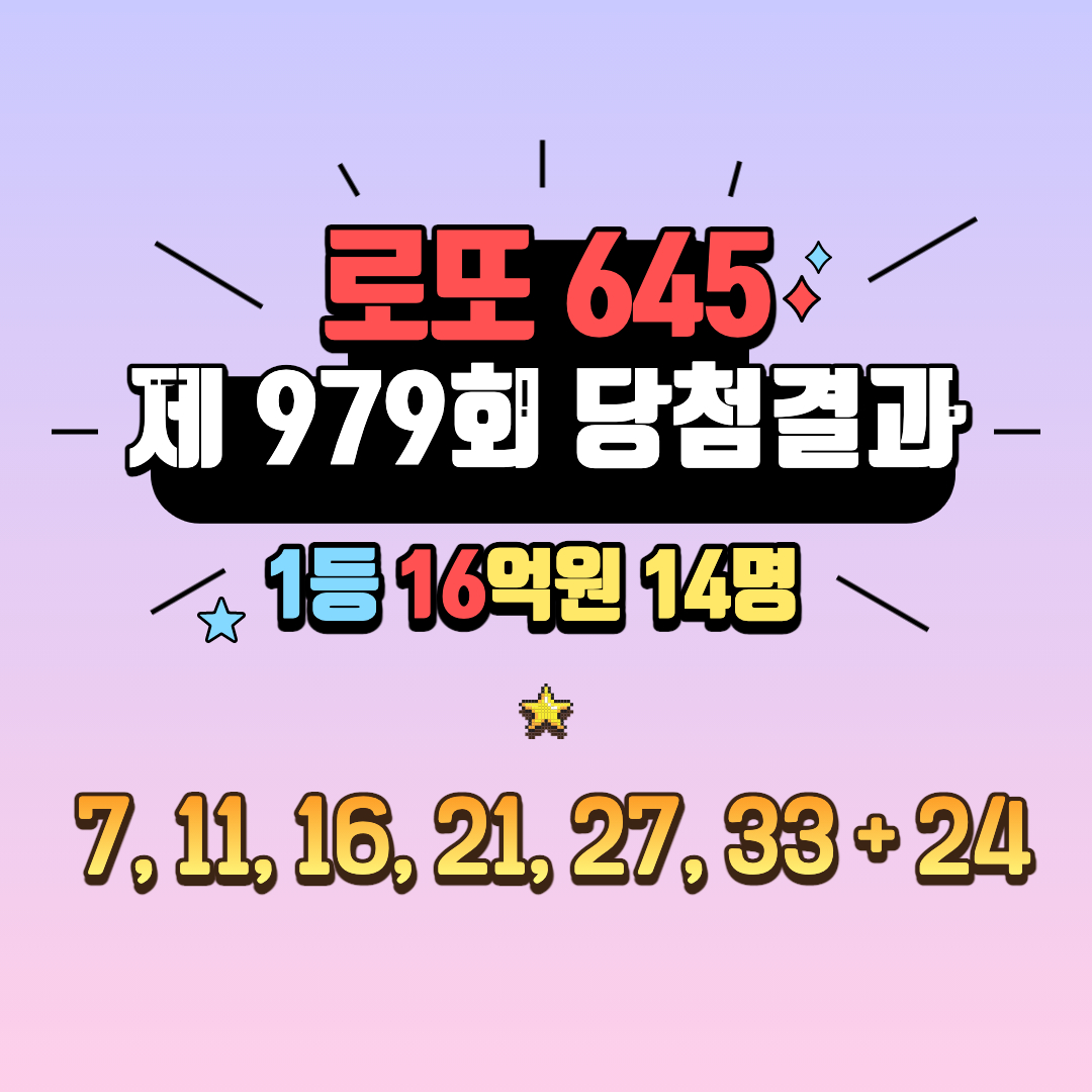♣ 로또 제 979회 1등 당첨번호 ♣