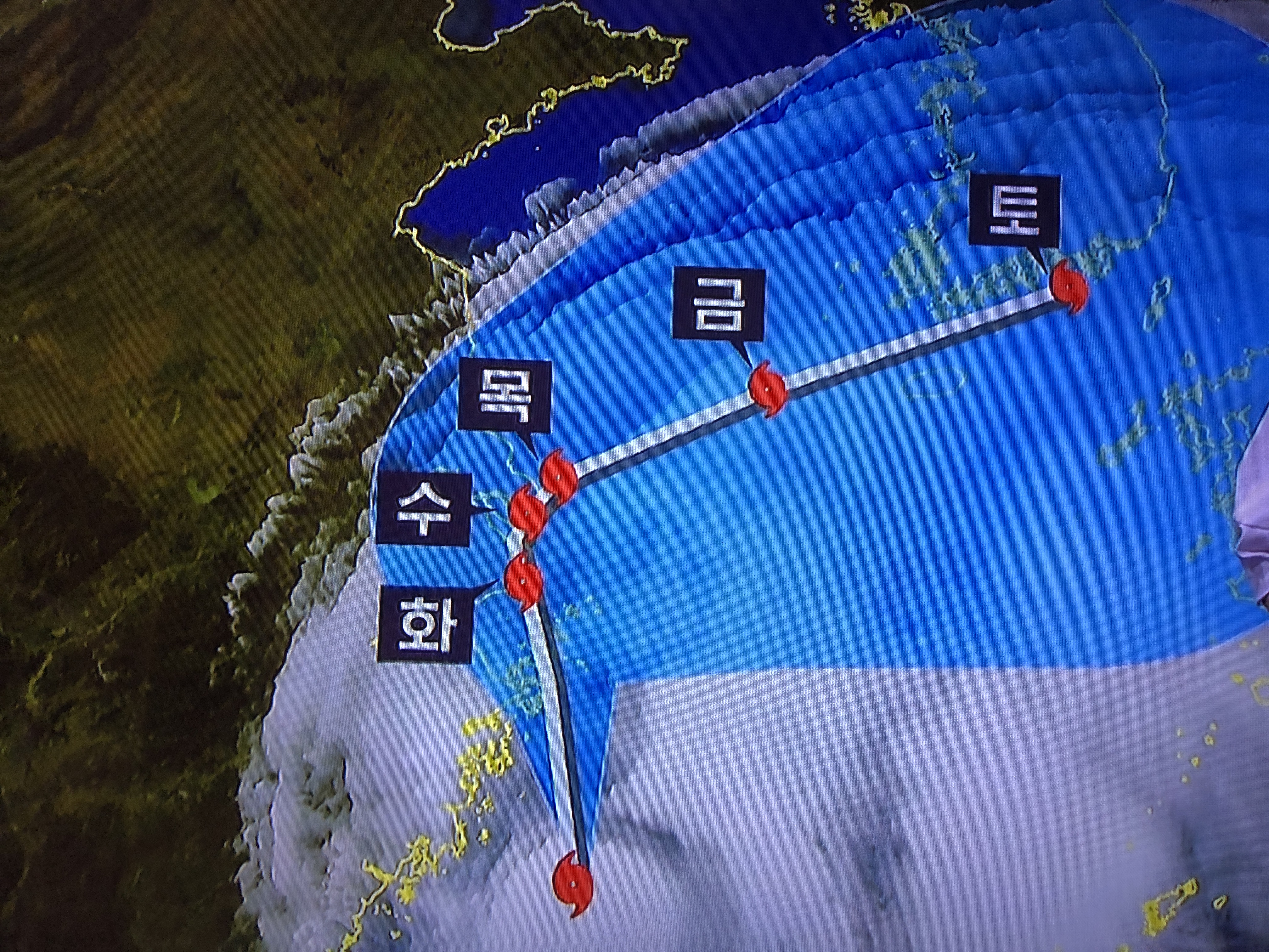 처음엔 대만을 거쳐 곧장 우리나라쪽으로 올라올것으로 예상했으나