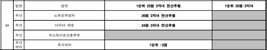당첨커트라인은 1순위 23점 2자녀 전산추첨으로 당첨자가 결정되었고