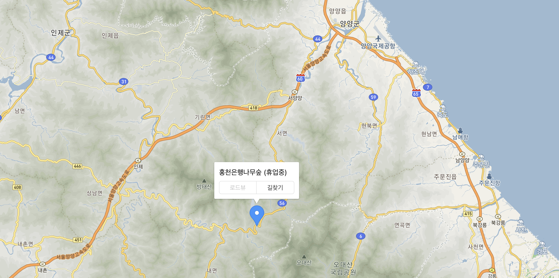 양양과 속초 모두 1시간 이내에 있으니