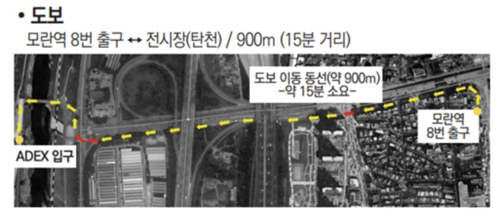 전시장 입구에서는 택시가 하차할 수 없기 때문에 모란역 8번출구 인근에서 내린 후