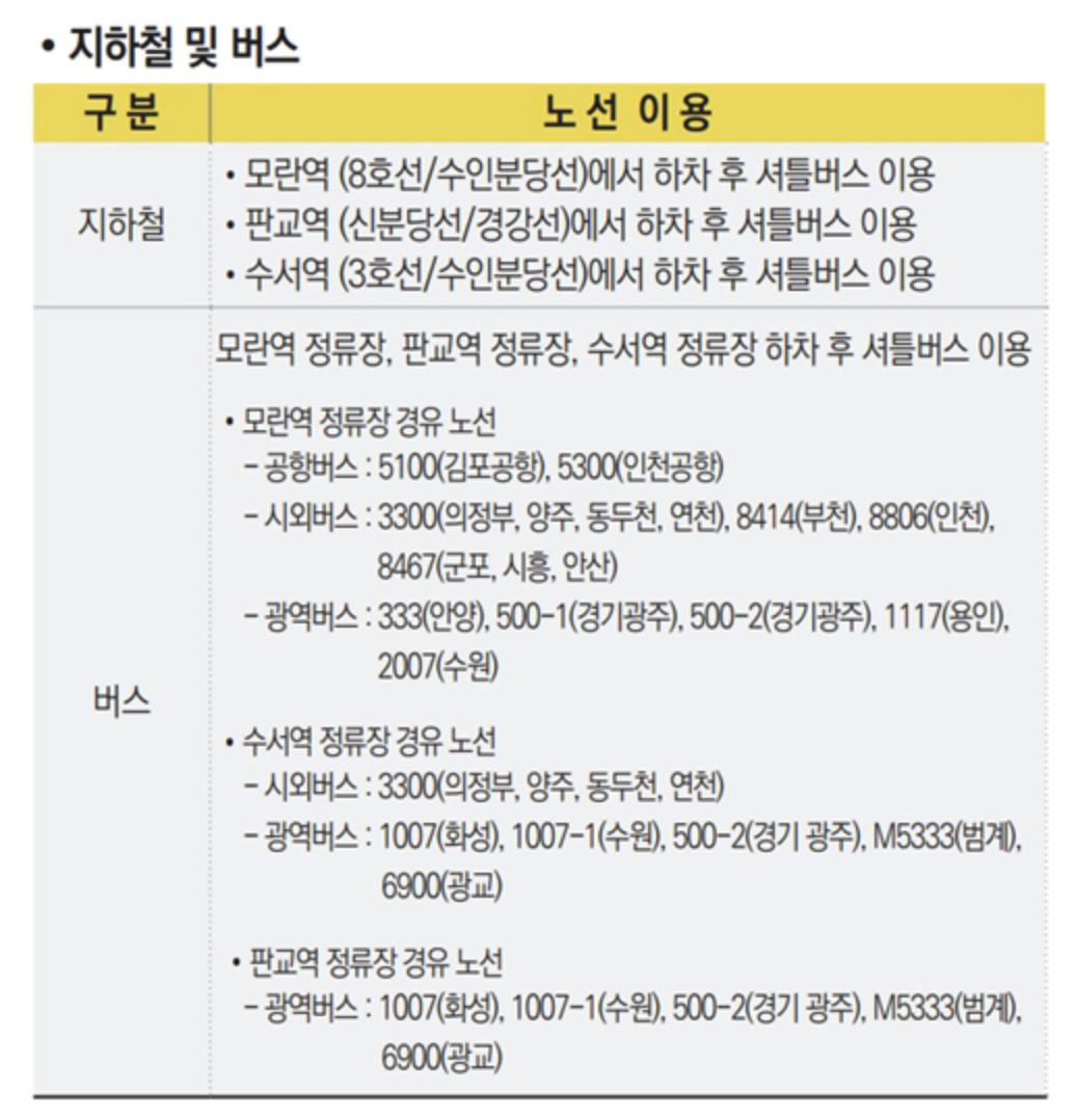 신분당선 판교역에서 하차 후 셔틀버스 이용
