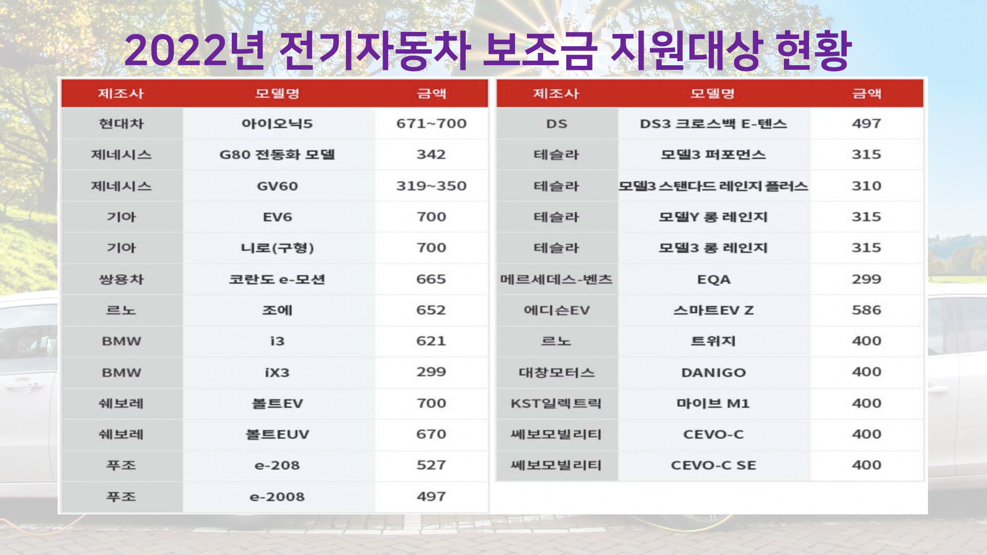 2022년 전기차 보조금이 최대 700만원으로 확정됨에 따라