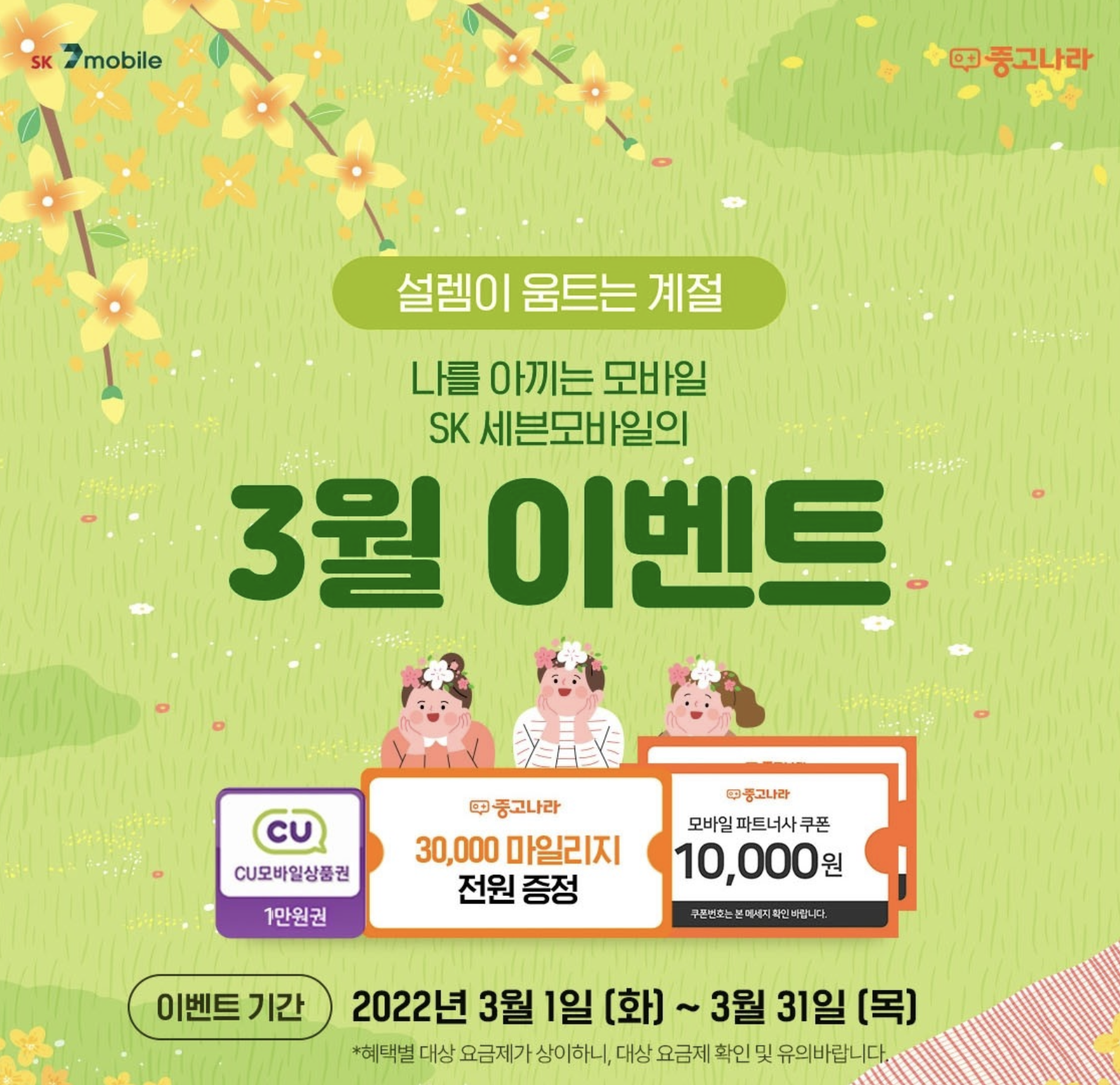 지금도 3월까지는 세븐모바일과 중고나라에서 이벤트를 진행하고 있으니