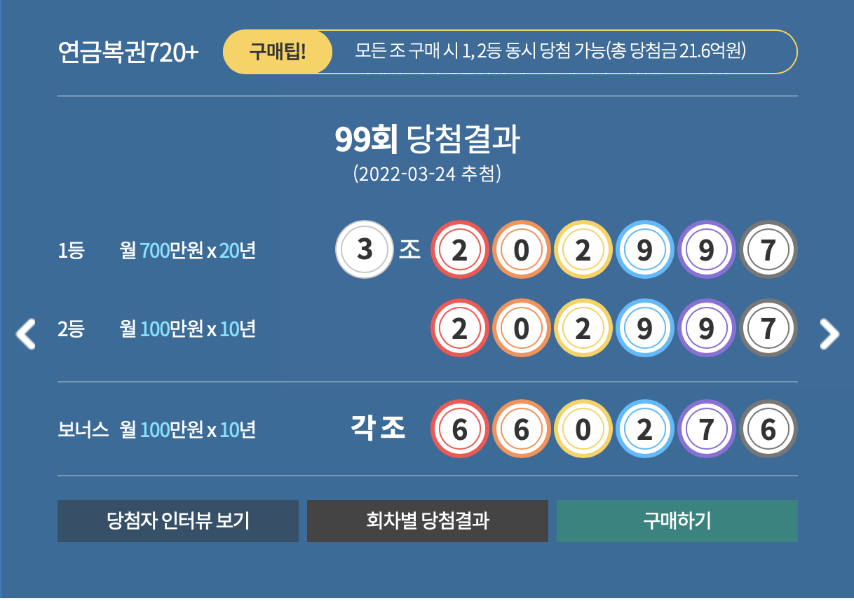 동행복권 홈페이지에서 연금복권 번호를 선정해 구매할 수 있으니