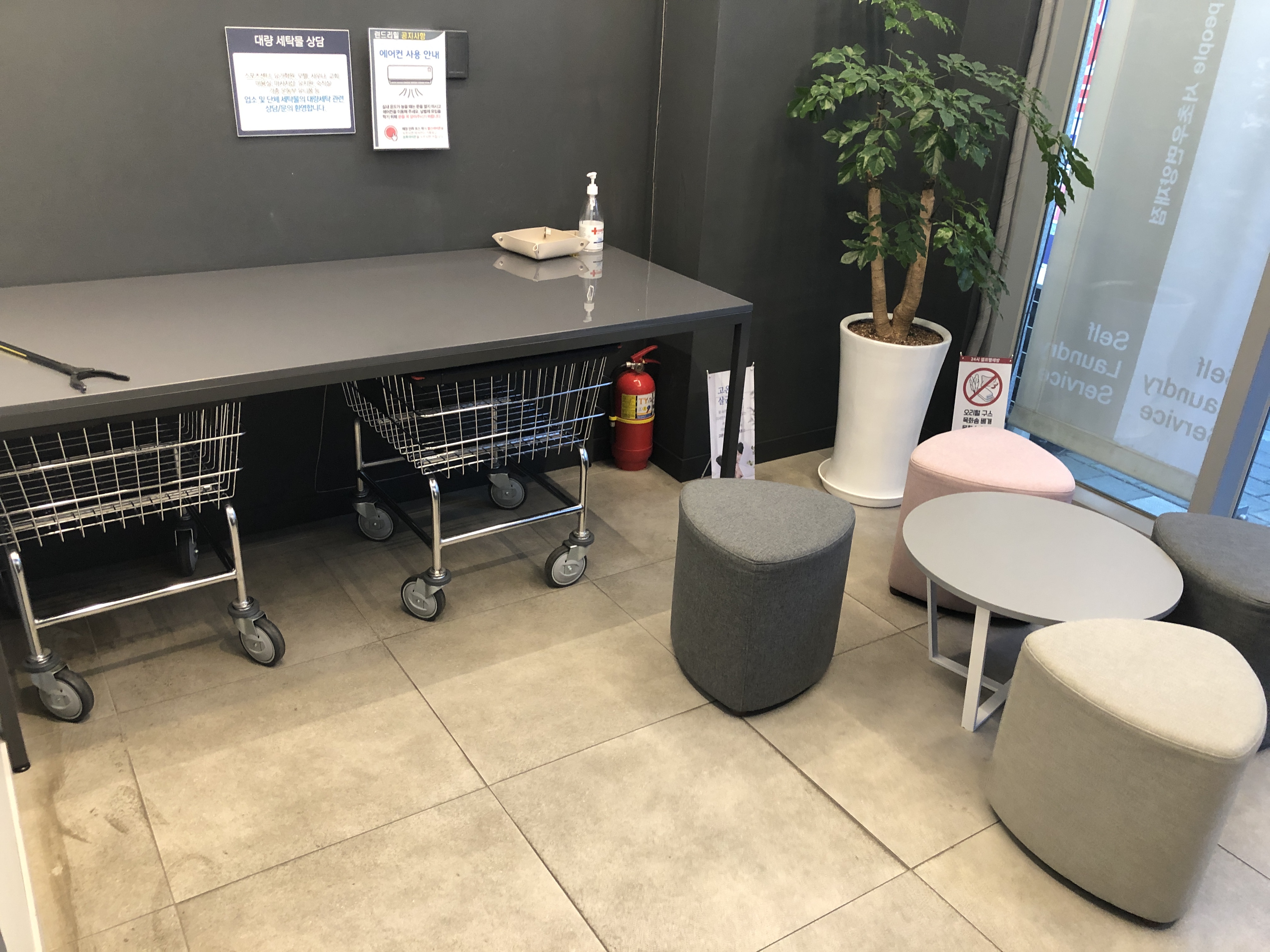 세탁이 진행되는 동안 잠시 쉴수 있는 공간이 있습니다.