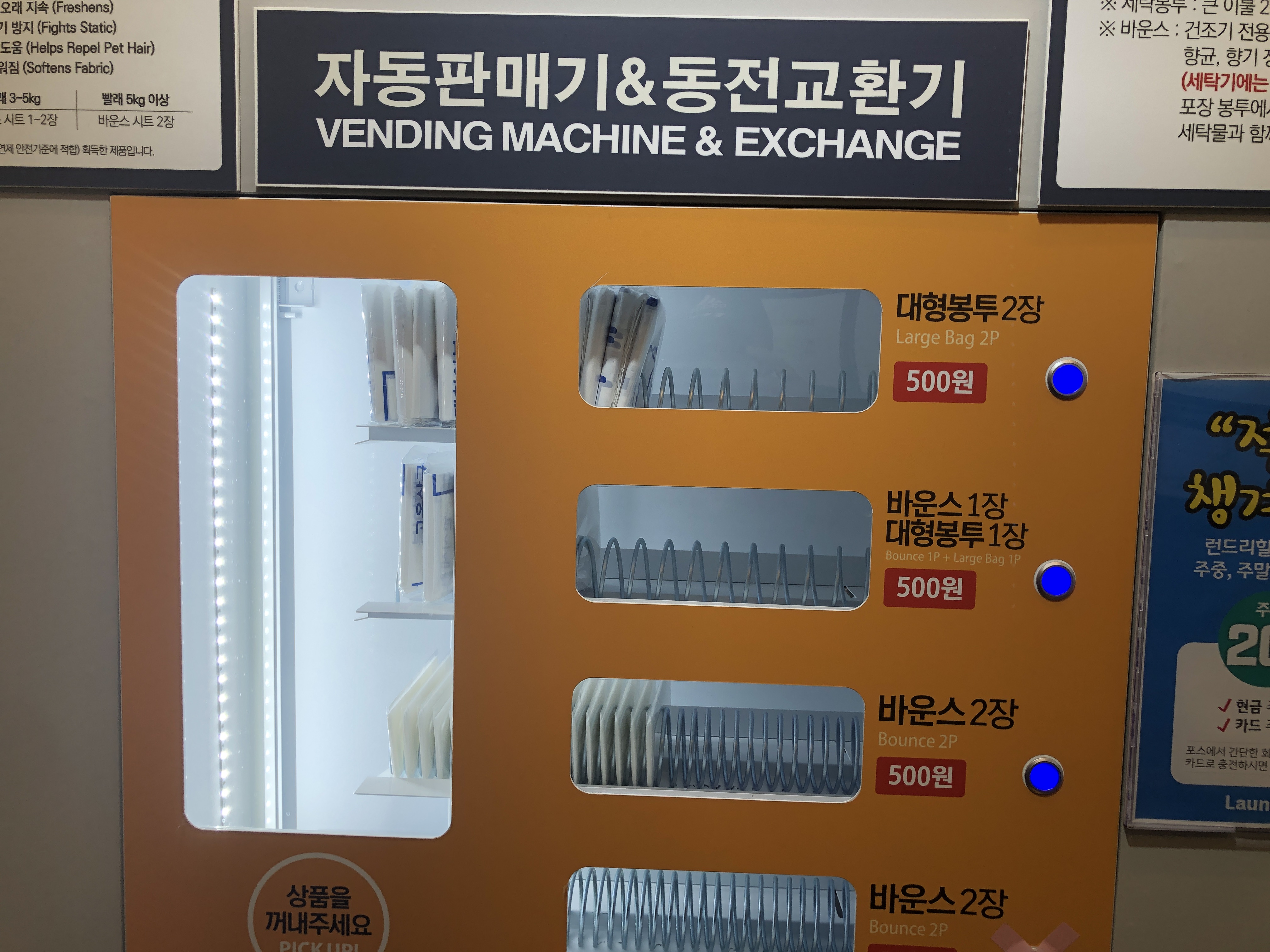 대형봉투 1장과 건조기에 넣을 바운스 1장이 같이 들어있는 500원짜리를 구입했습니다.