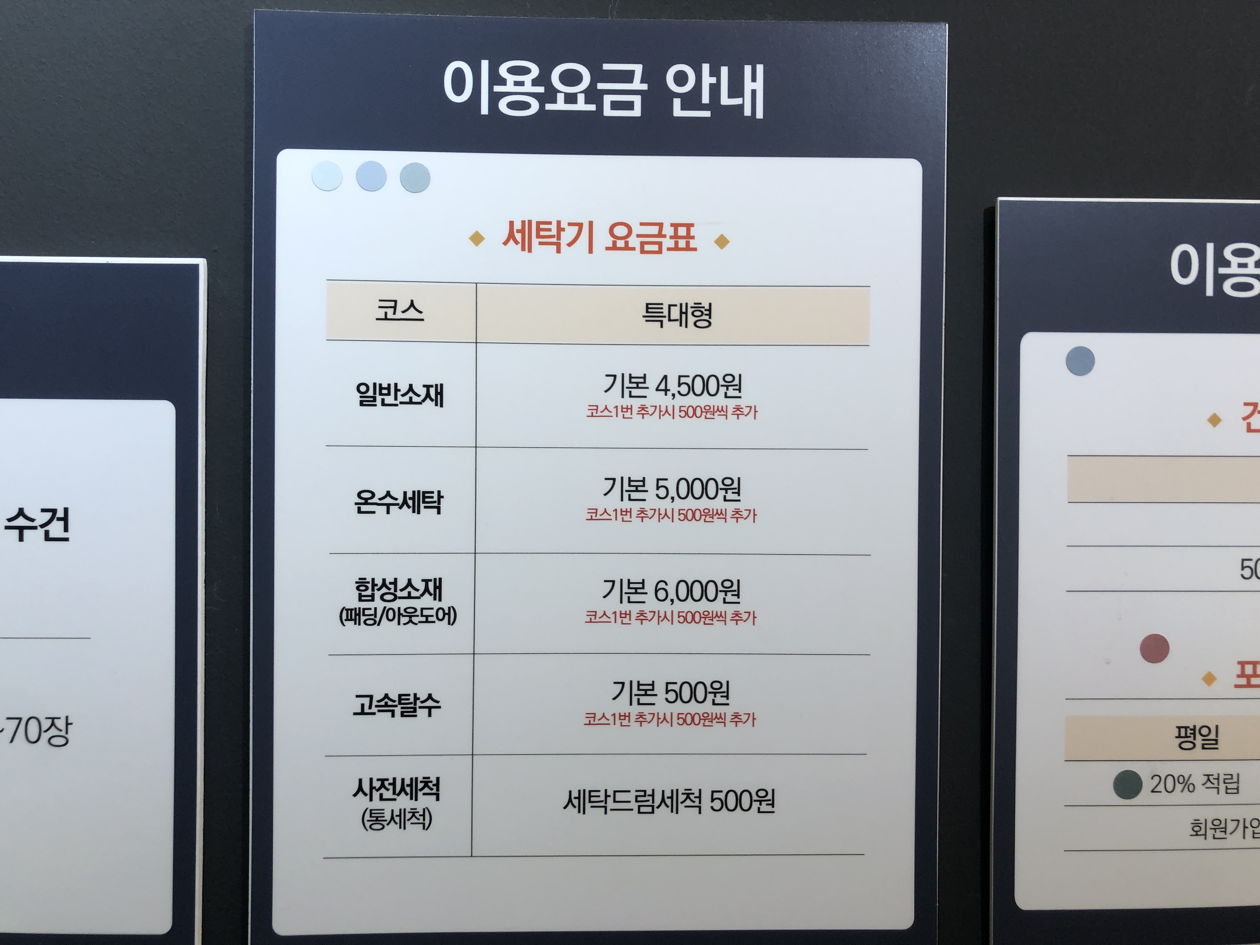 일반소재 기본 4500원, 온수세탁 기본 5000원
