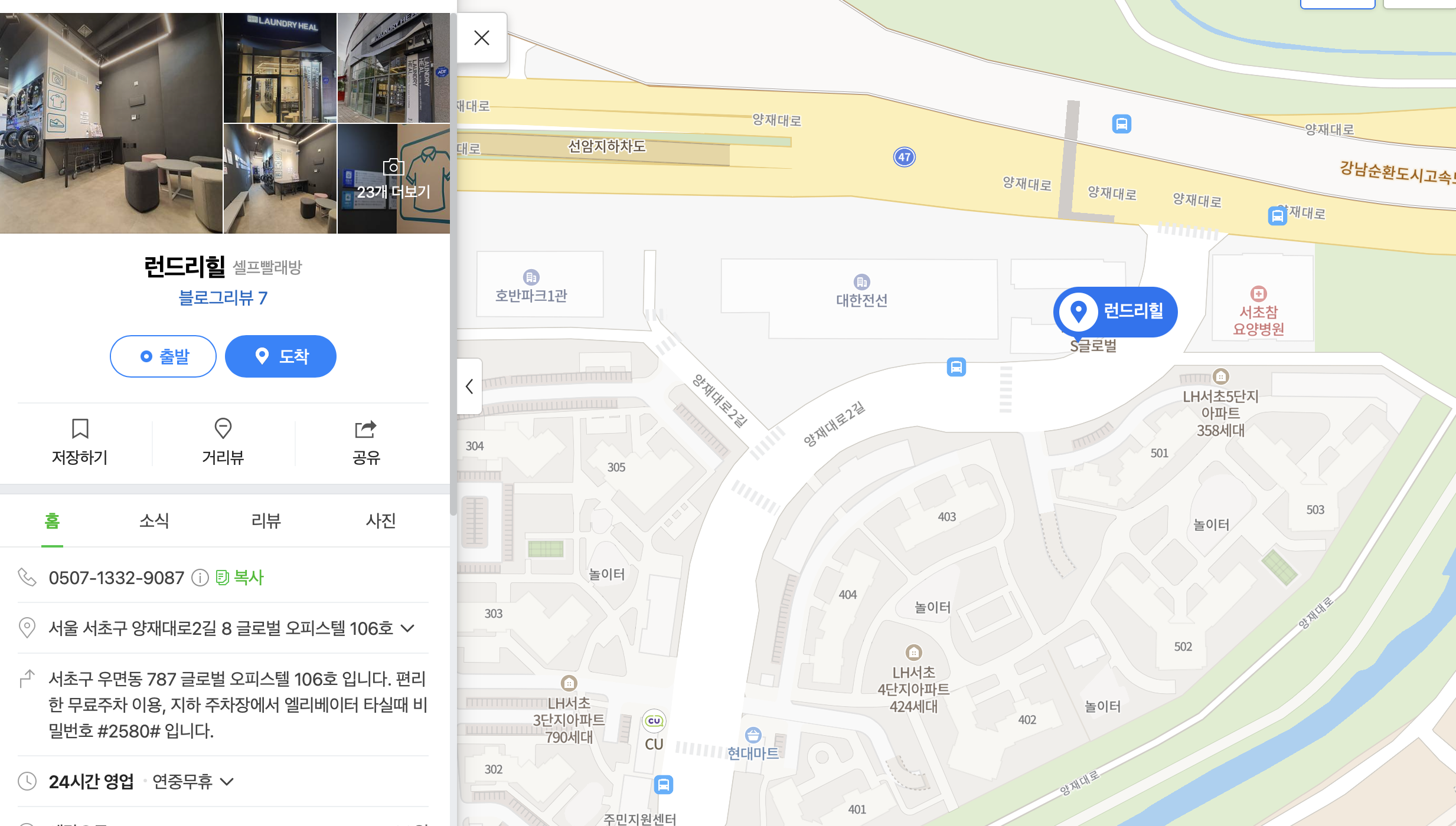 서초에 있는 런드리힐 셀프빨래방 위치는