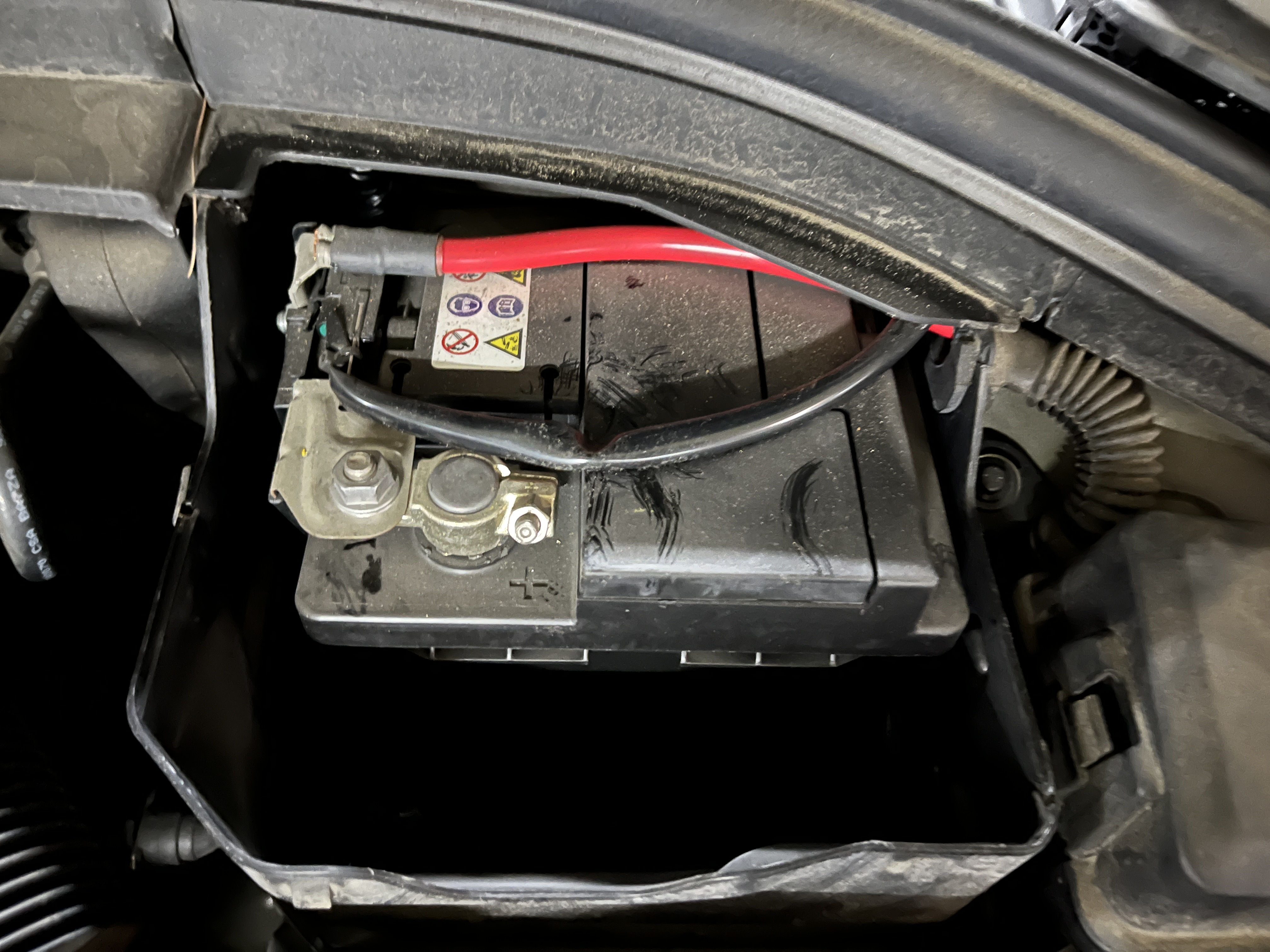 우선 차량의 후드를 열고 배터리 부분의 케이스를 열어야 되는데