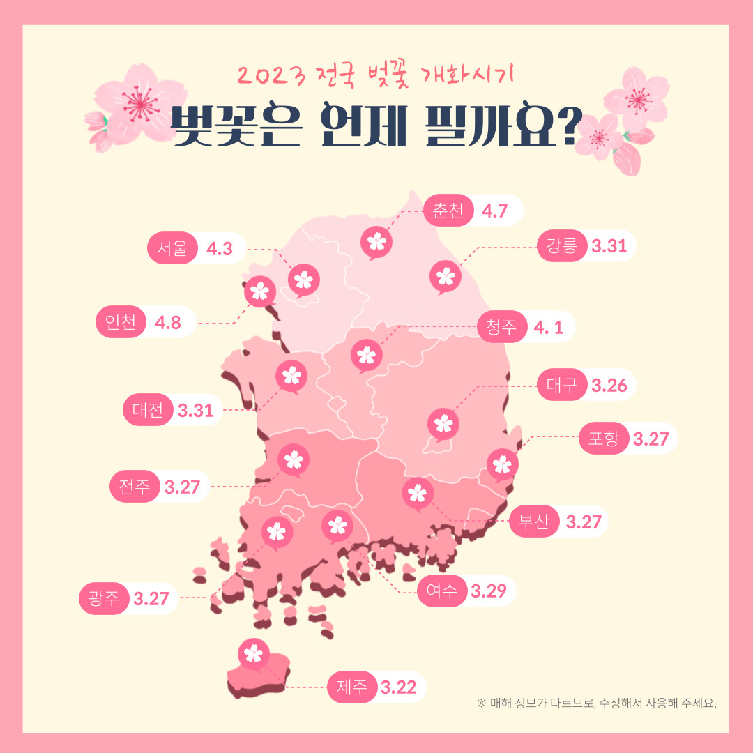 본격적인 봄꽃 벚꽃 피는 날이 다가왔습니다.