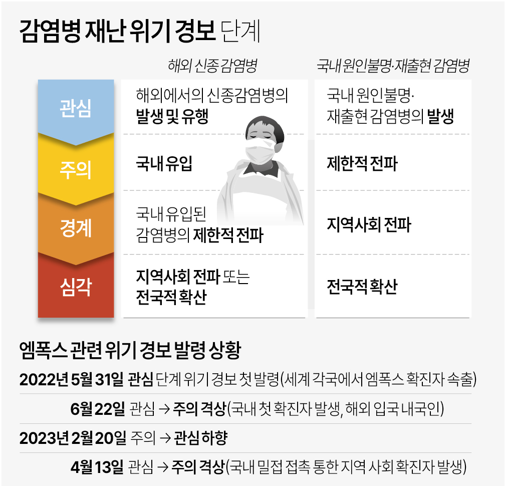 질병관리청 위기평가회의는 엠폭스가 전 세계적 발생은 감소 추세지만 일본, 대만 등 인접국가의 발생 확산이 지속되고 있으며 국내 발생빈도가 증가하는 상황을 종합적으로 검토해 위기경보 수준 격상을 결정했습니다.