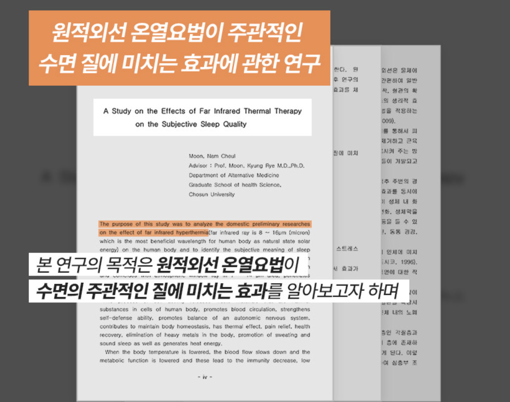 수면의질 측정결과 원적외선 매트로 주무신 분은 일반수면에 비해 약 7.58% 더 양질의 수면을 취했다는 연구결과도 있습니다.