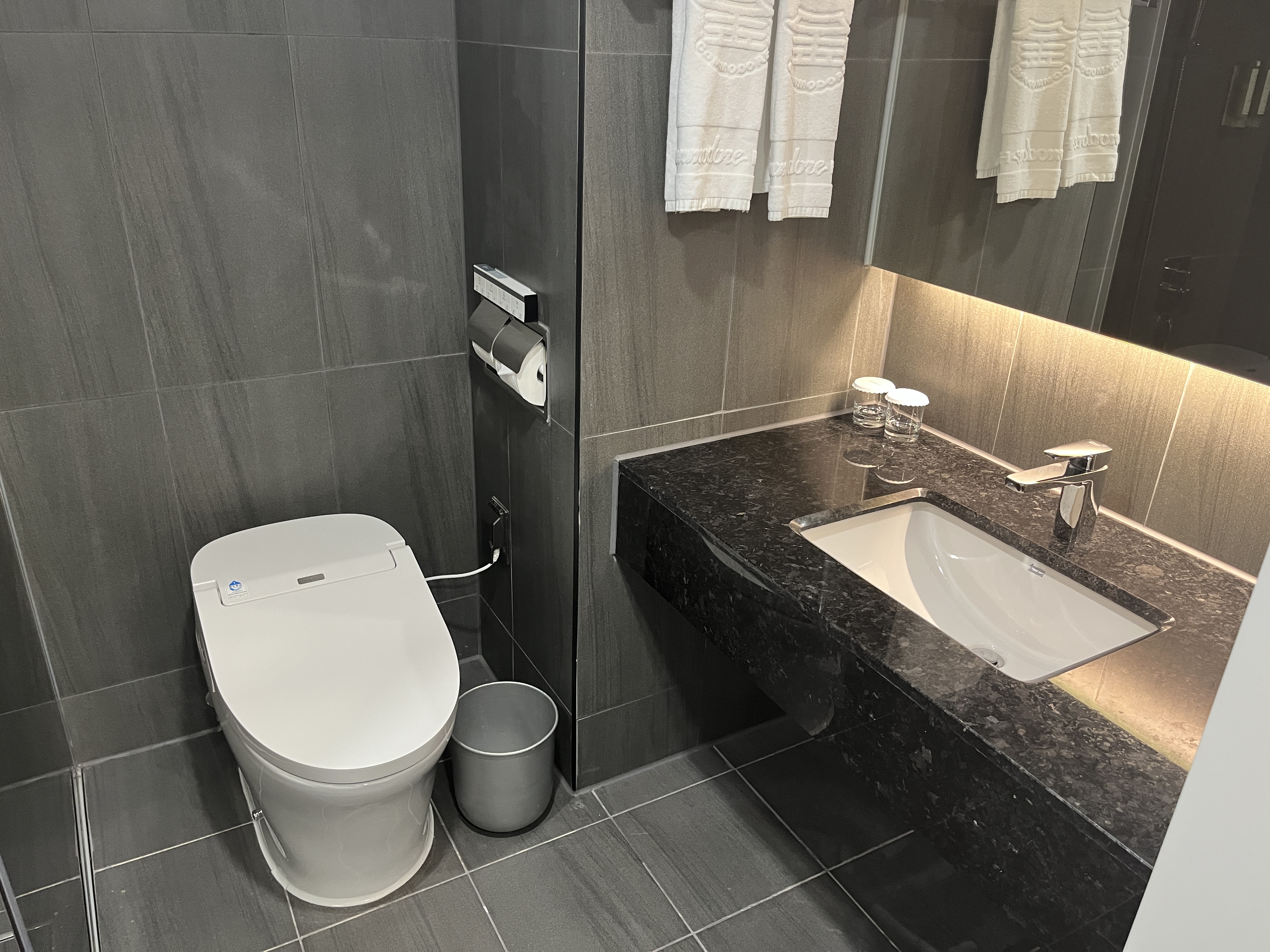 깔끔한 화장실과 욕실 어메니티는 기본적인 것들이 잘 갖춰져 있었습니다.