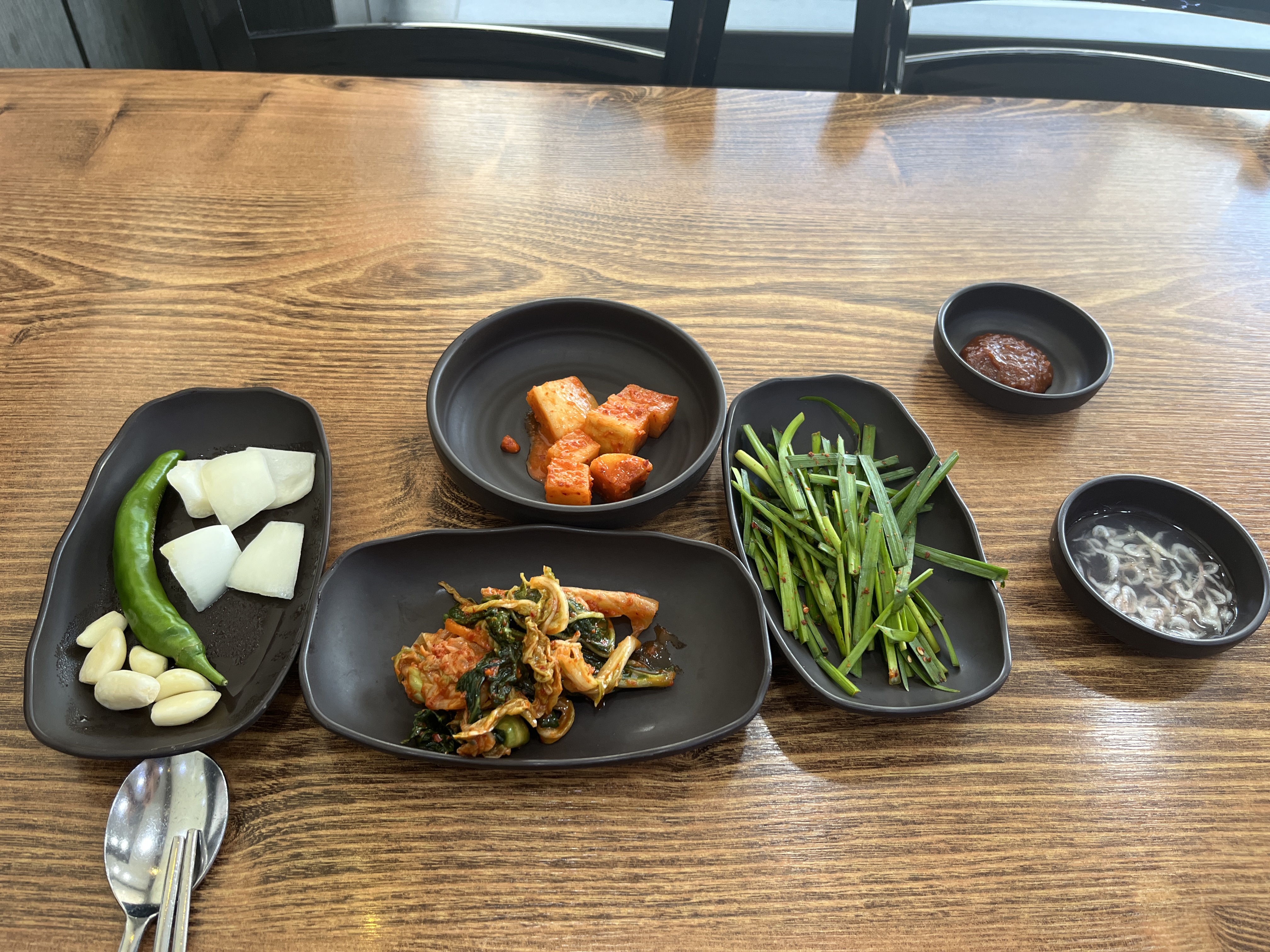 여기에 곁들여 나온 김치와 깍두기 그리고 부추가 국밥의 맛을 한층 더 돋보이게 했습니다. 이곳 초량국밥집의 특징인지 모르겠지만 같이 나오는 쌈장이 있는데 그걸 국밥에 넣어주면 더욱 맛있다고 사장님이 가르켜줘서 그렇게 했더니 더욱 돼지국밥이 훨씬 맛있었습니다.