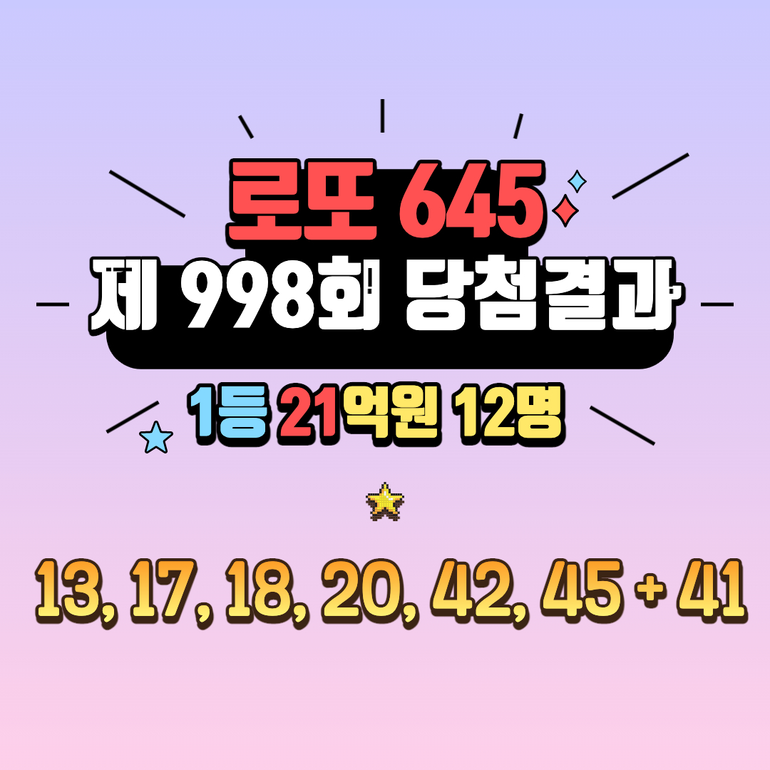 ♣ 제 998회 로또 1등 당첨번호 ♣
