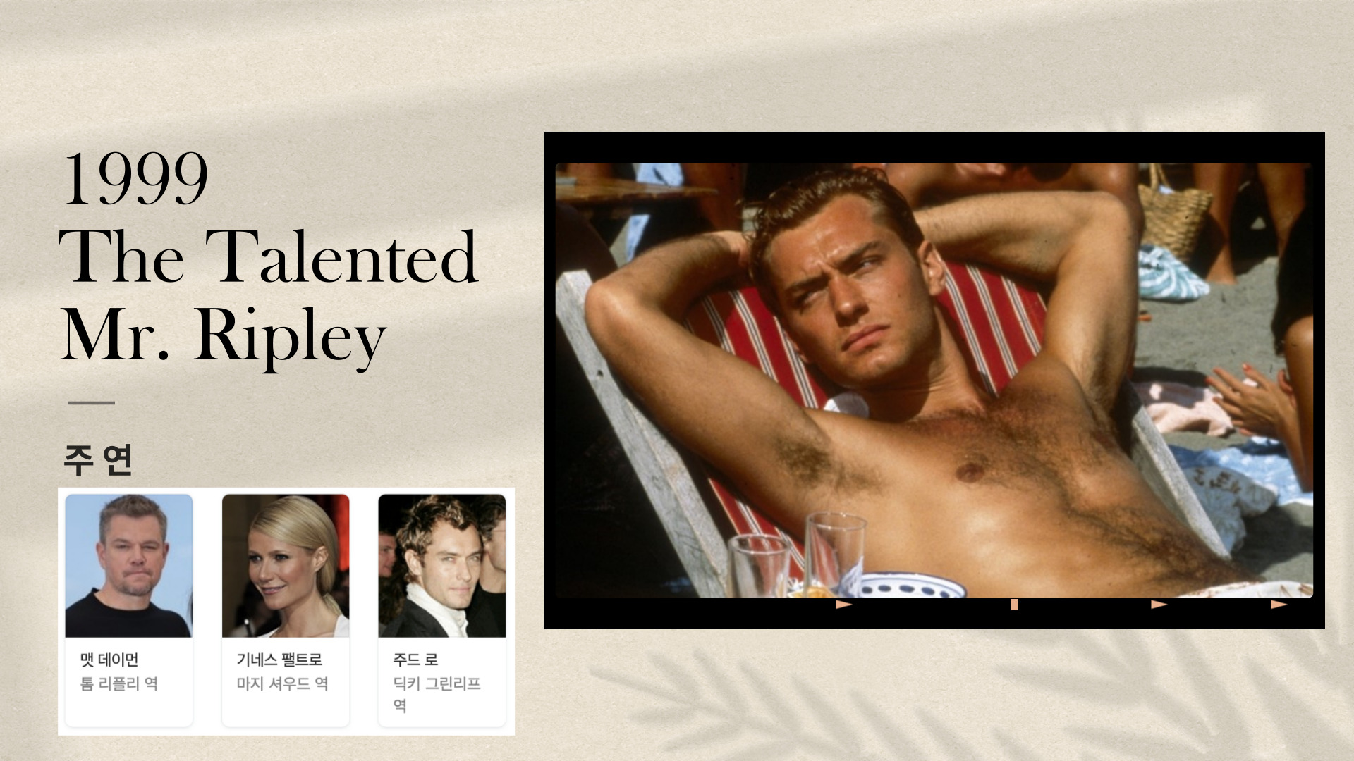 이 이야기는 1999년 맷 데이먼과 귀네스 팰트로, 주드 로 가 주연한 영화로도 제작이 되었는데요.