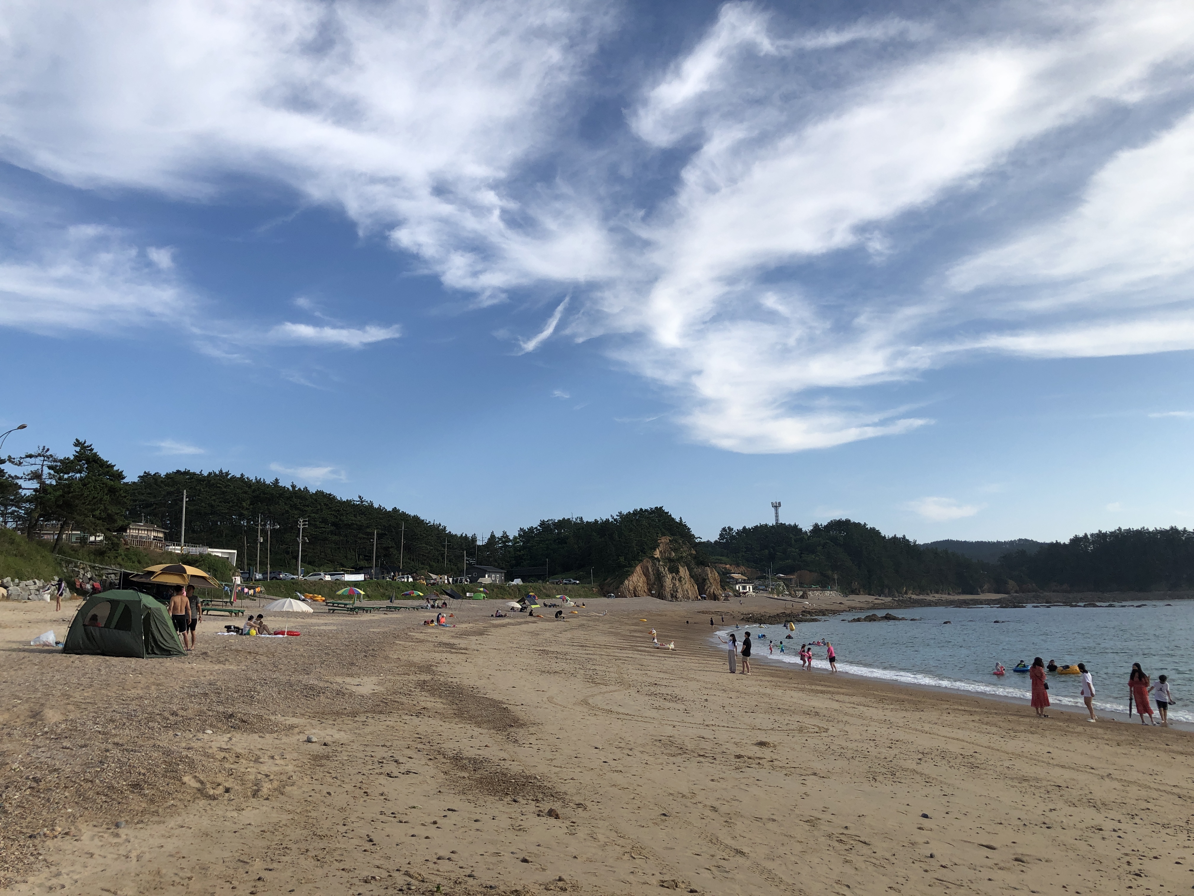 해변에도 드문드문 텐트나 파라솔을 치고 가족 단위 해수욕을 즐기는 사람들이었습니다.