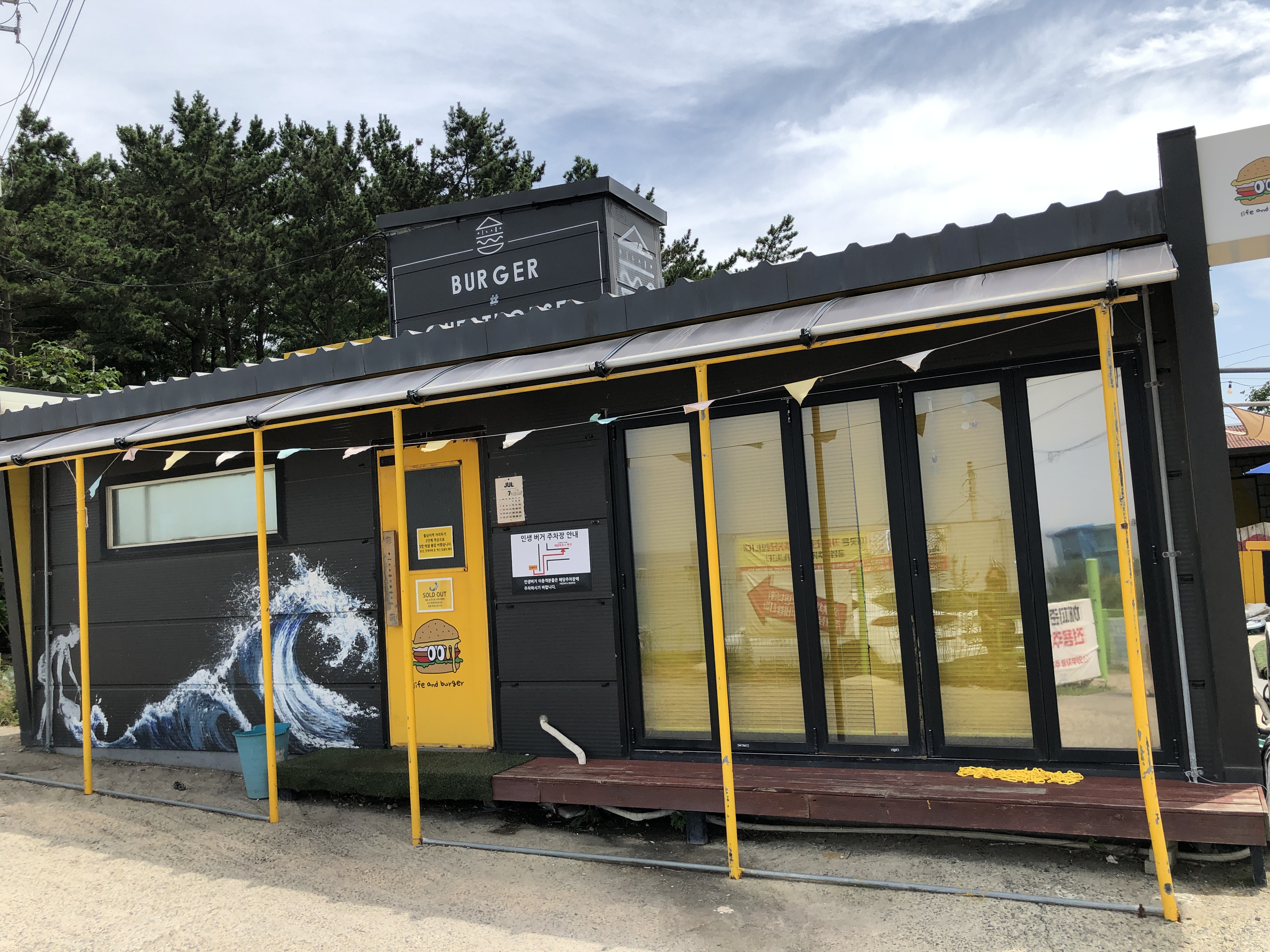 파도리해수욕장 바닷가 입구쪽에 인생버거 가게가 있습니다.