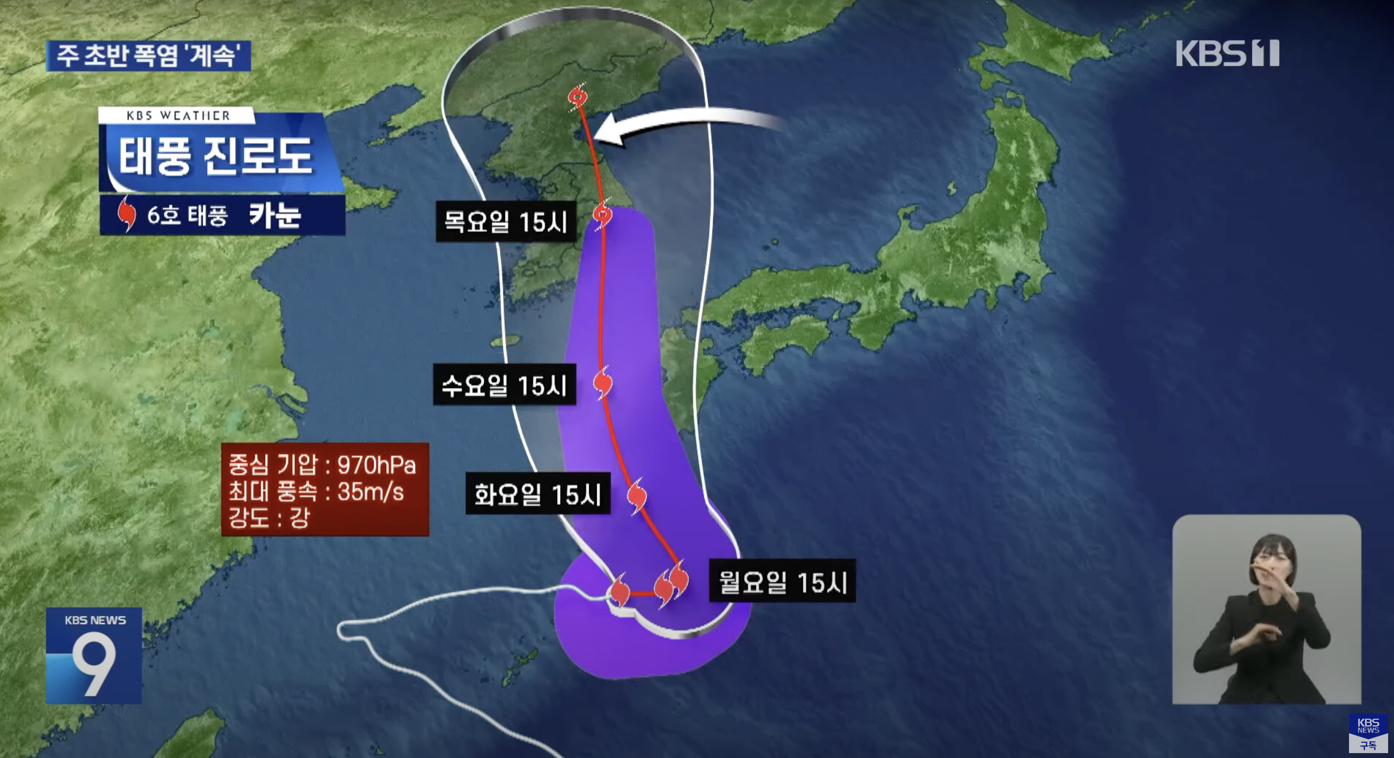 2023년 제 6호 태풍 카눈(KHANUN) 한반도 관통 속보