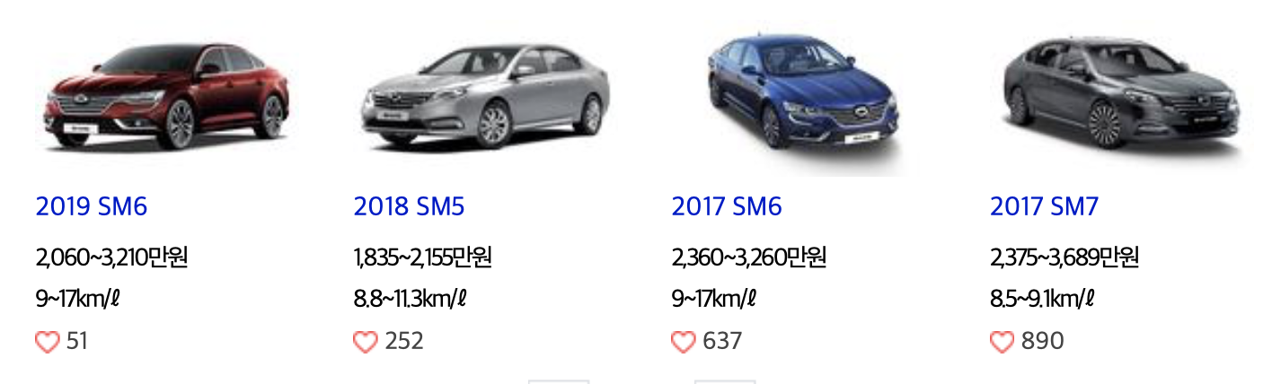 르노삼성 : SM5, SM6, SM7 + 상반기중 QM6 추가 예정