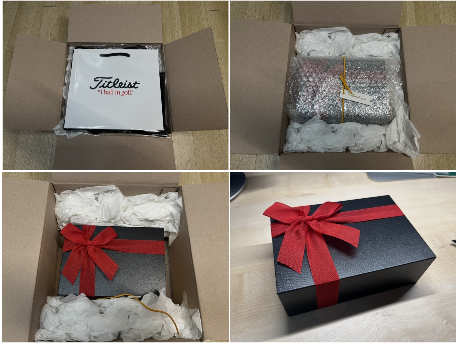 회식전 선물 증정식대 상품권을 전달드리고 선물로 골프공을 드렸을 때,