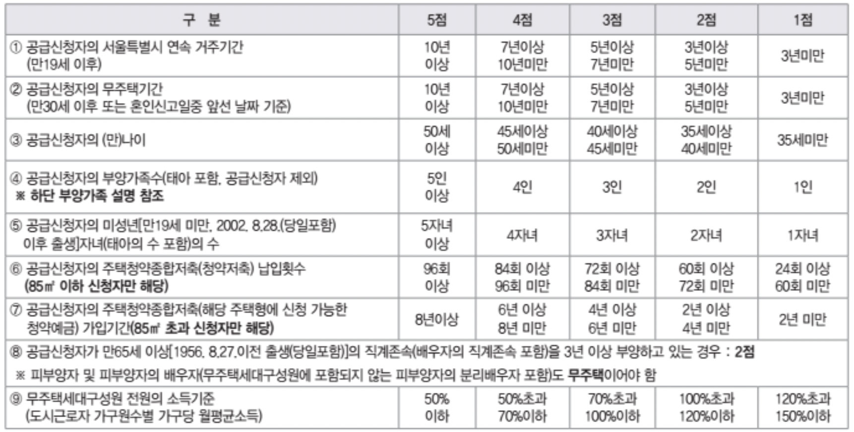 신청자가 나이가 많고 부양가족이 많고 청약저축 가입횟수가 길고 무주택기간이 길면