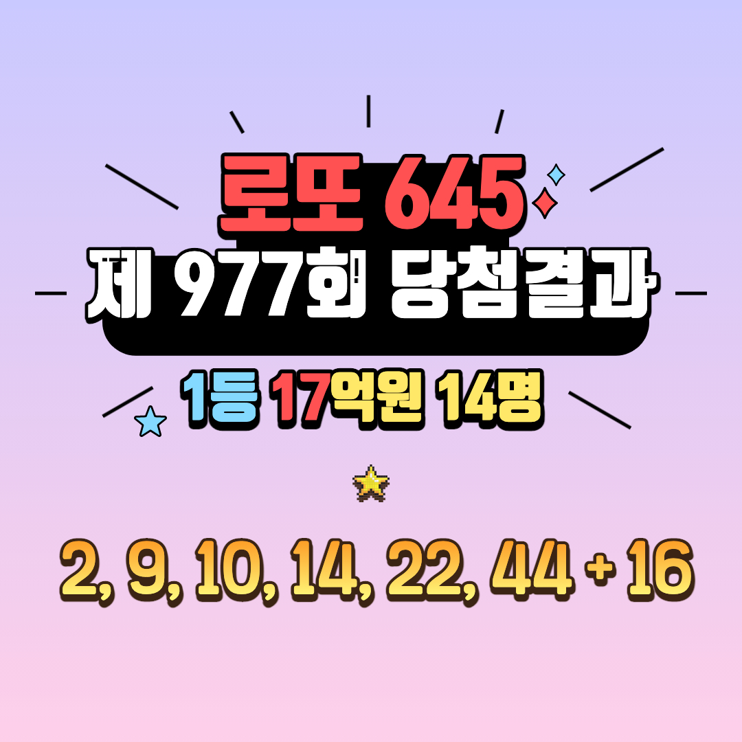 ♣ 로또 제 977회 1등 당첨번호 ♣