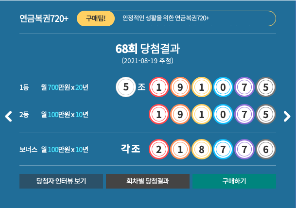 연금복권 720+ 제 68회 1등 당첨결과는