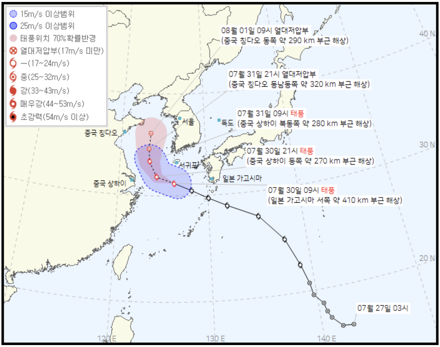 9월 7일쯤에는 완전히 한반도를 벗어날 것으로 예보하고 있습니다.