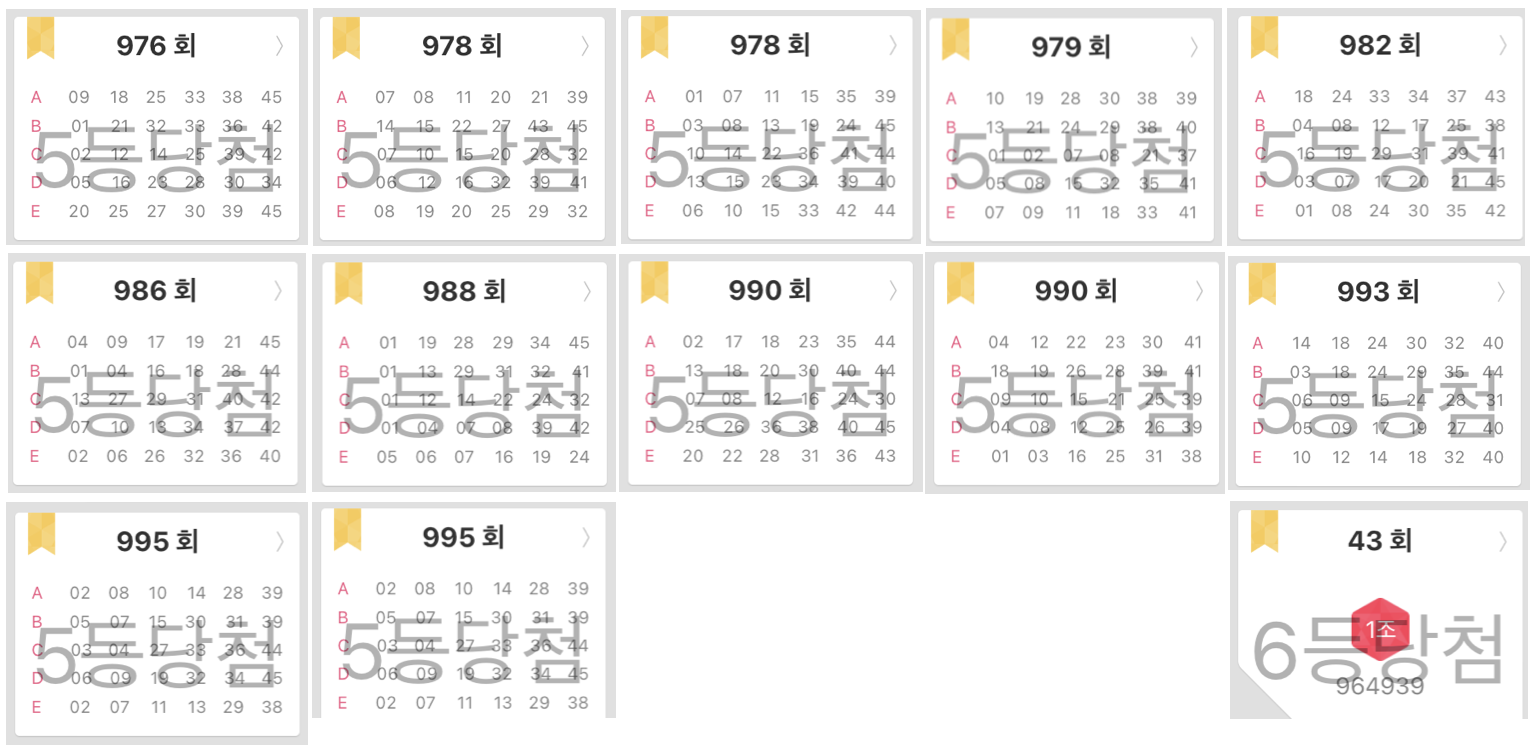 그동안 여러분들은 몇 등 당첨이 되셨는지요..